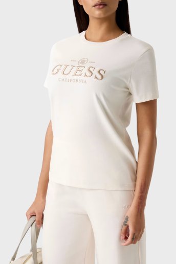 Logolu Pamuk Karışımlı Slim Fit Bisiklet Yaka V6RI06KD741 Bayan T Shirt V6RI06 KD741 G027 BEYAZ