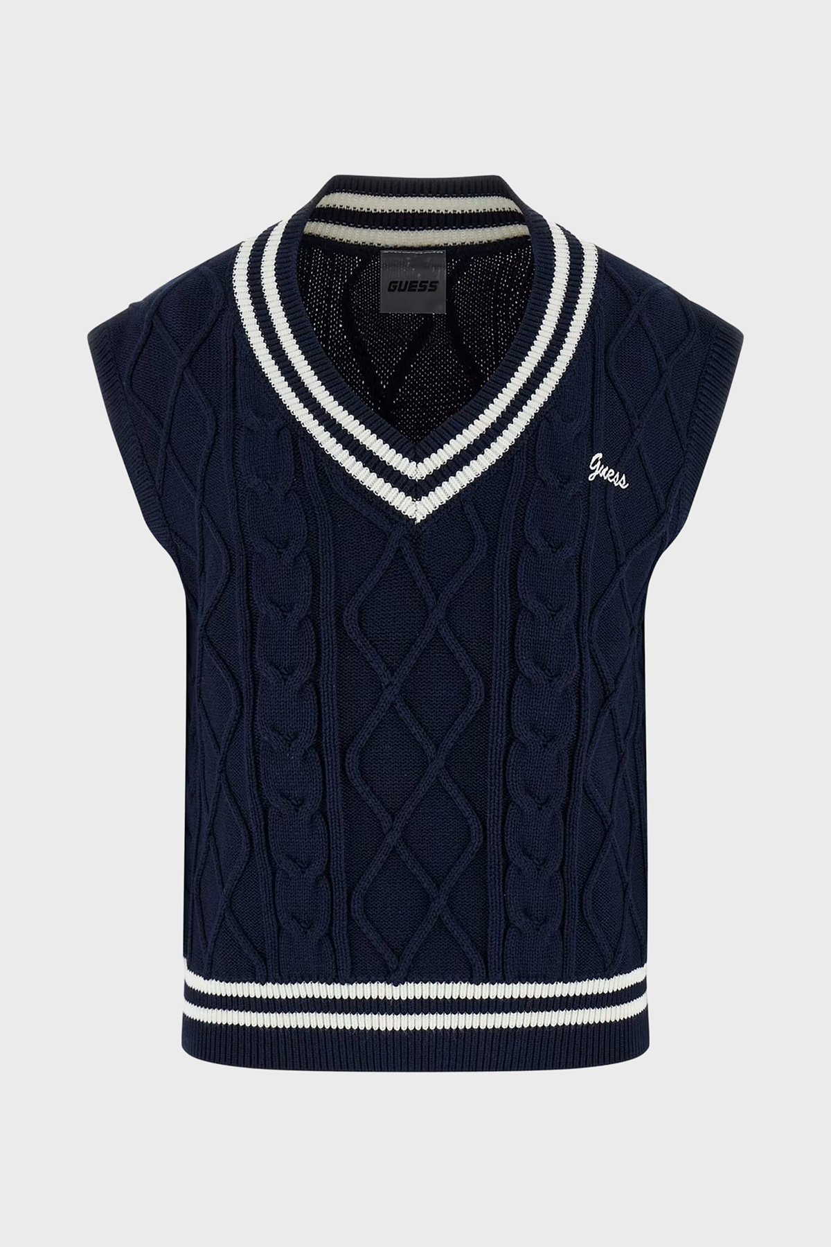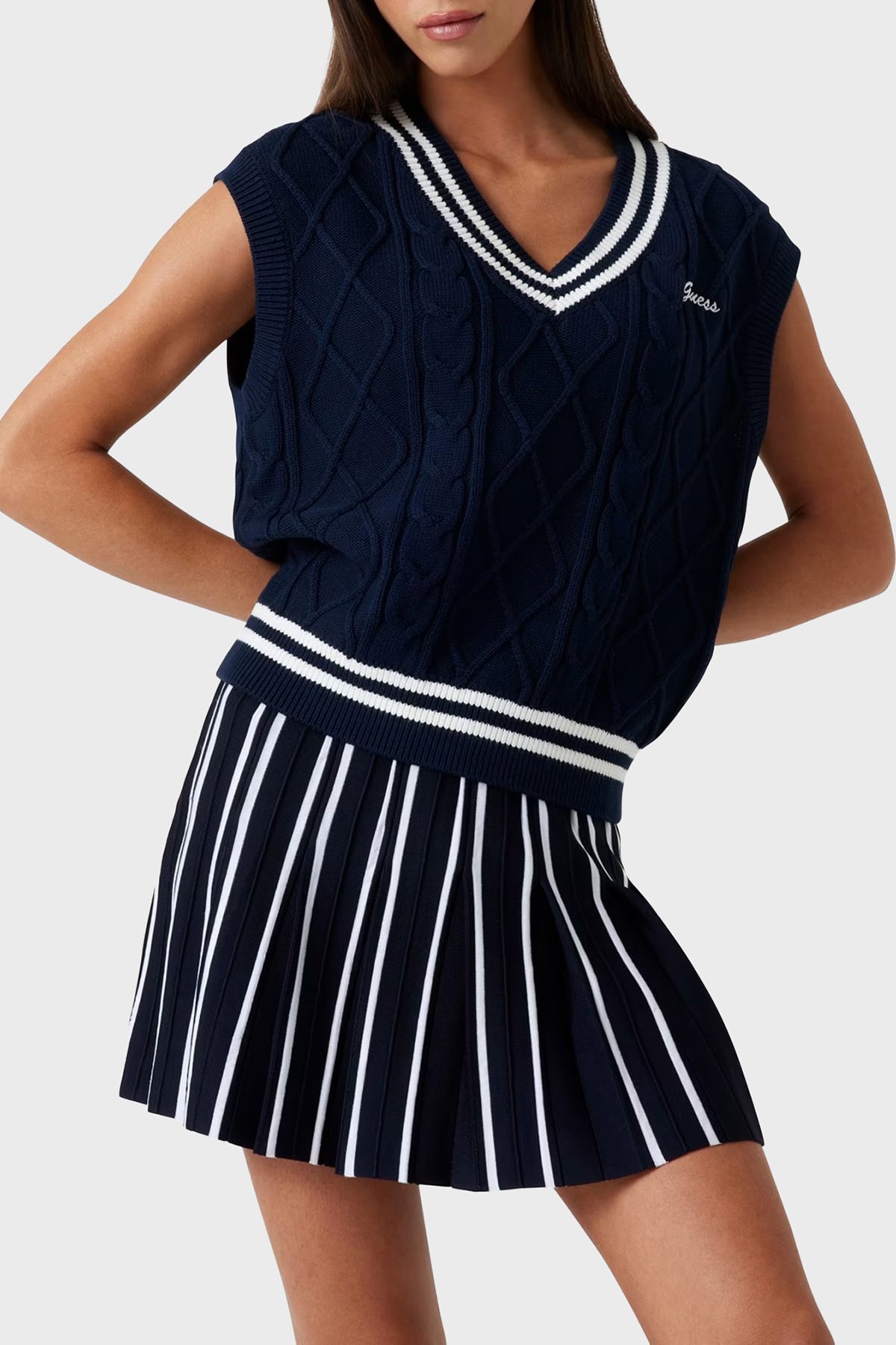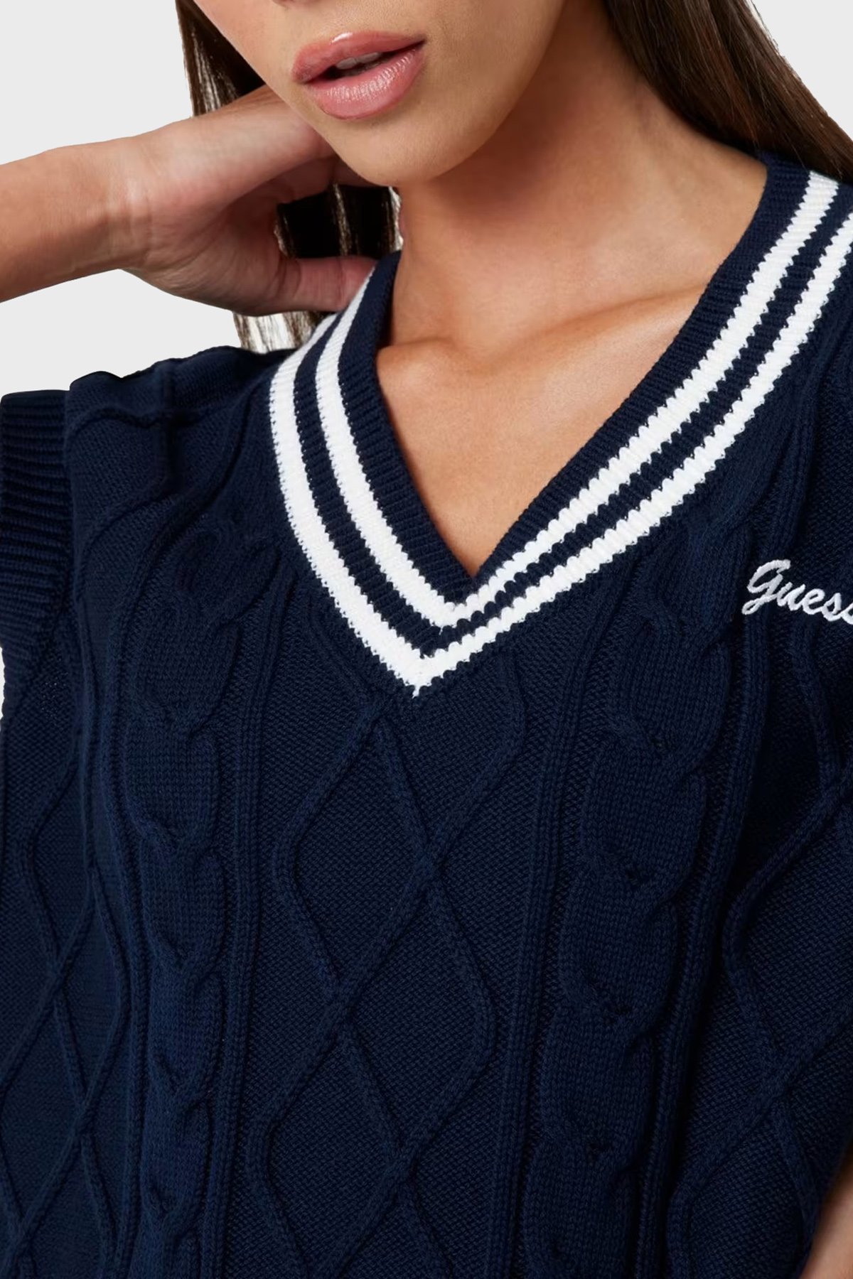 Logolu Pamuklu Standart Fit V Yaka Örgü V5GR00Z3FB1 Bayan Süveter V5GR00 Z3FB1 A71W LACİVERT