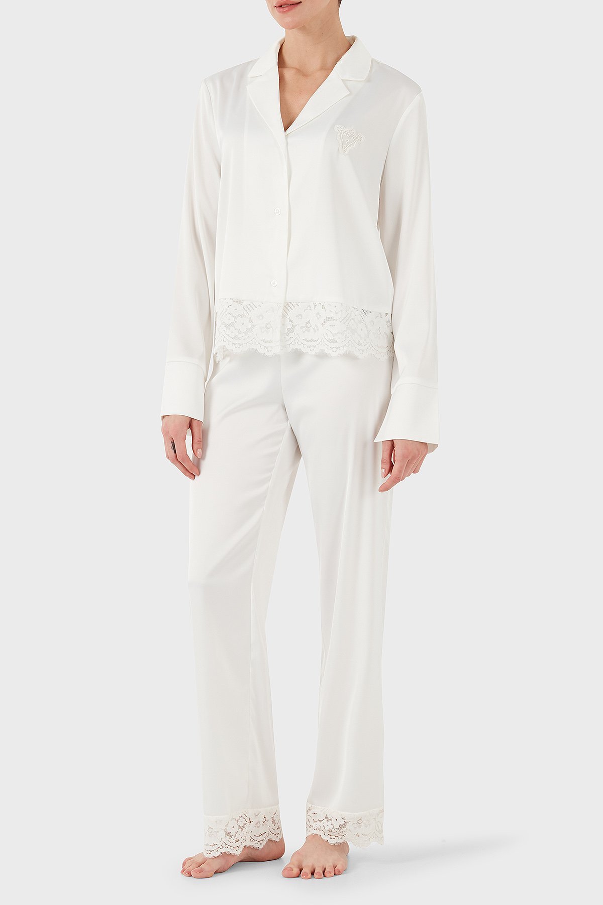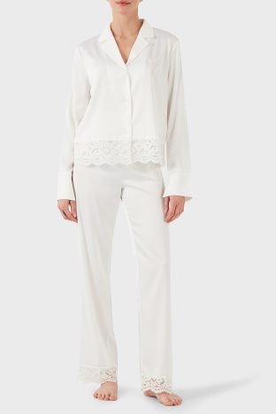 Logolu Regular Fit Yüksek Bel Bol Paça O4BX02WEFC2 Bayan Pijama Takımı O4BX02 WEFC2 G018 BEYAZ