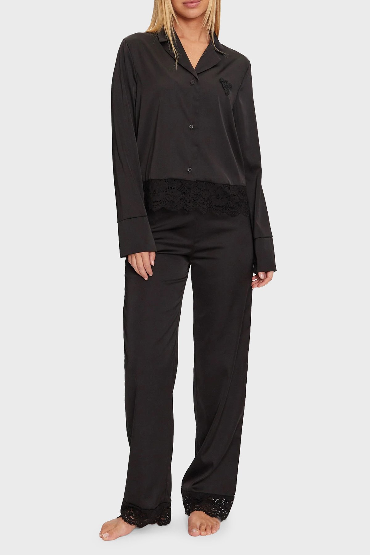 Logolu Regular Fit Yüksek Bel Bol Paça O4BX02WEFC2 Bayan Pijama Takımı O4BX02 WEFC2 JBLK SİYAH