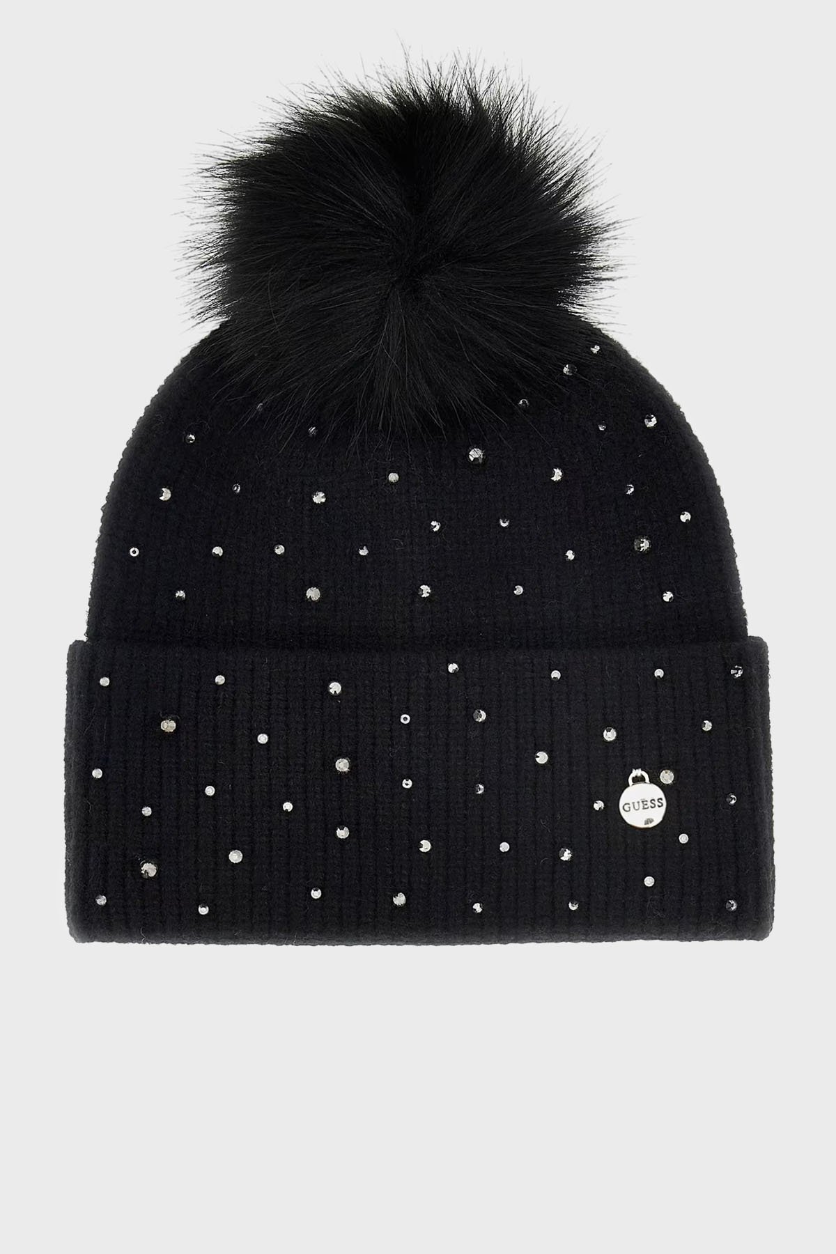 Logolu Taşlı ve Ponponlu AW5213POL01 Bayan Bere AW5213 POL01 BLA SİYAH