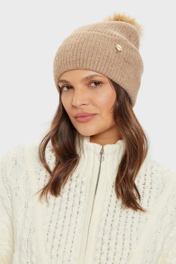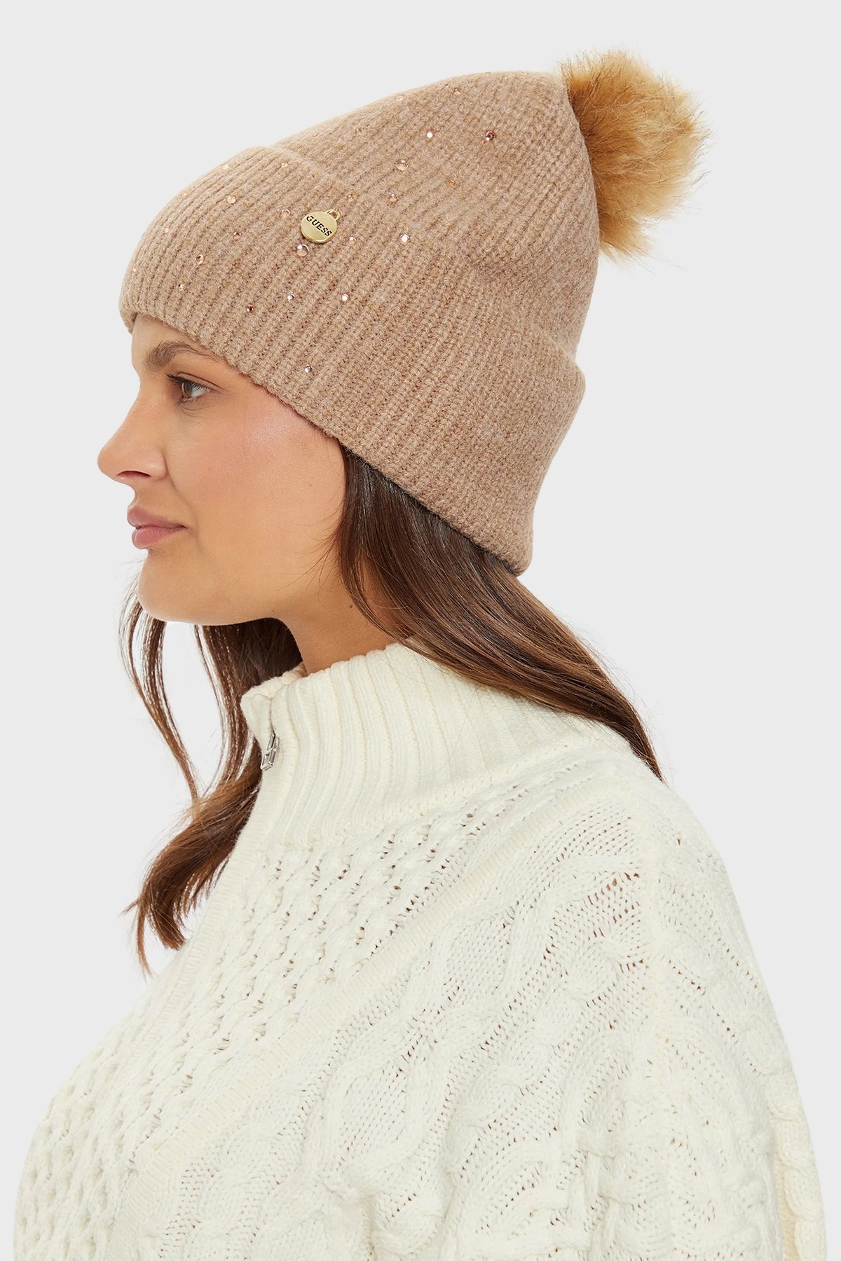 Logolu Taşlı ve Ponponlu AW5213POL01 Bayan Bere AW5213 POL01 CAM KAHVE
