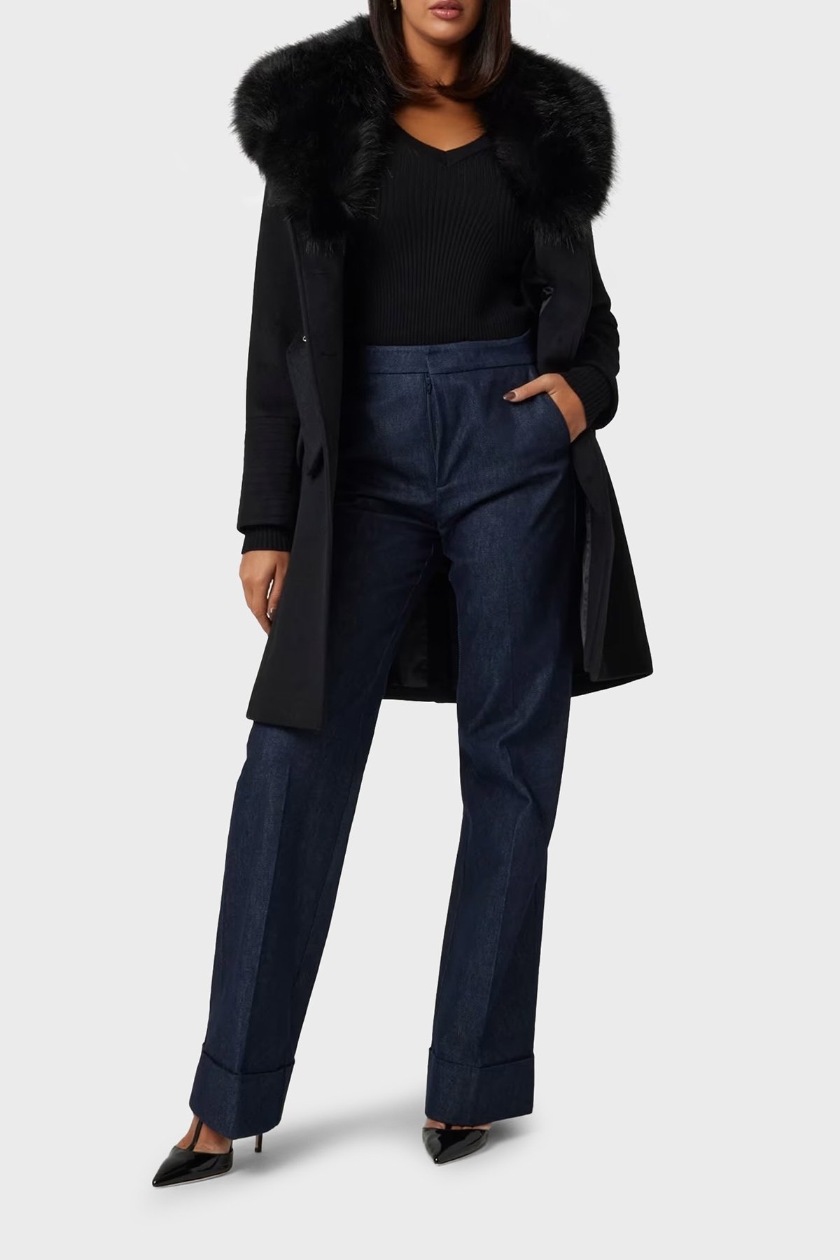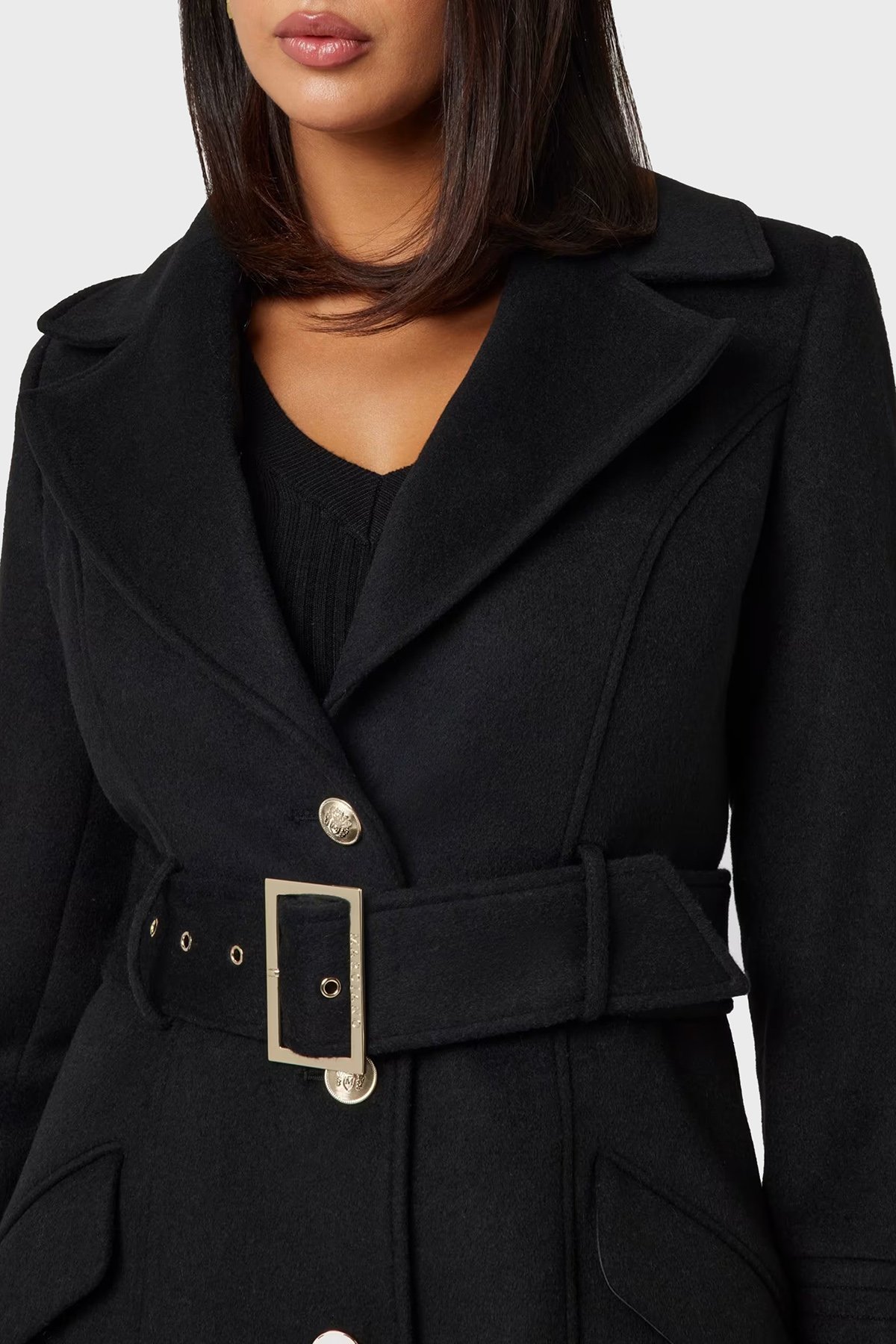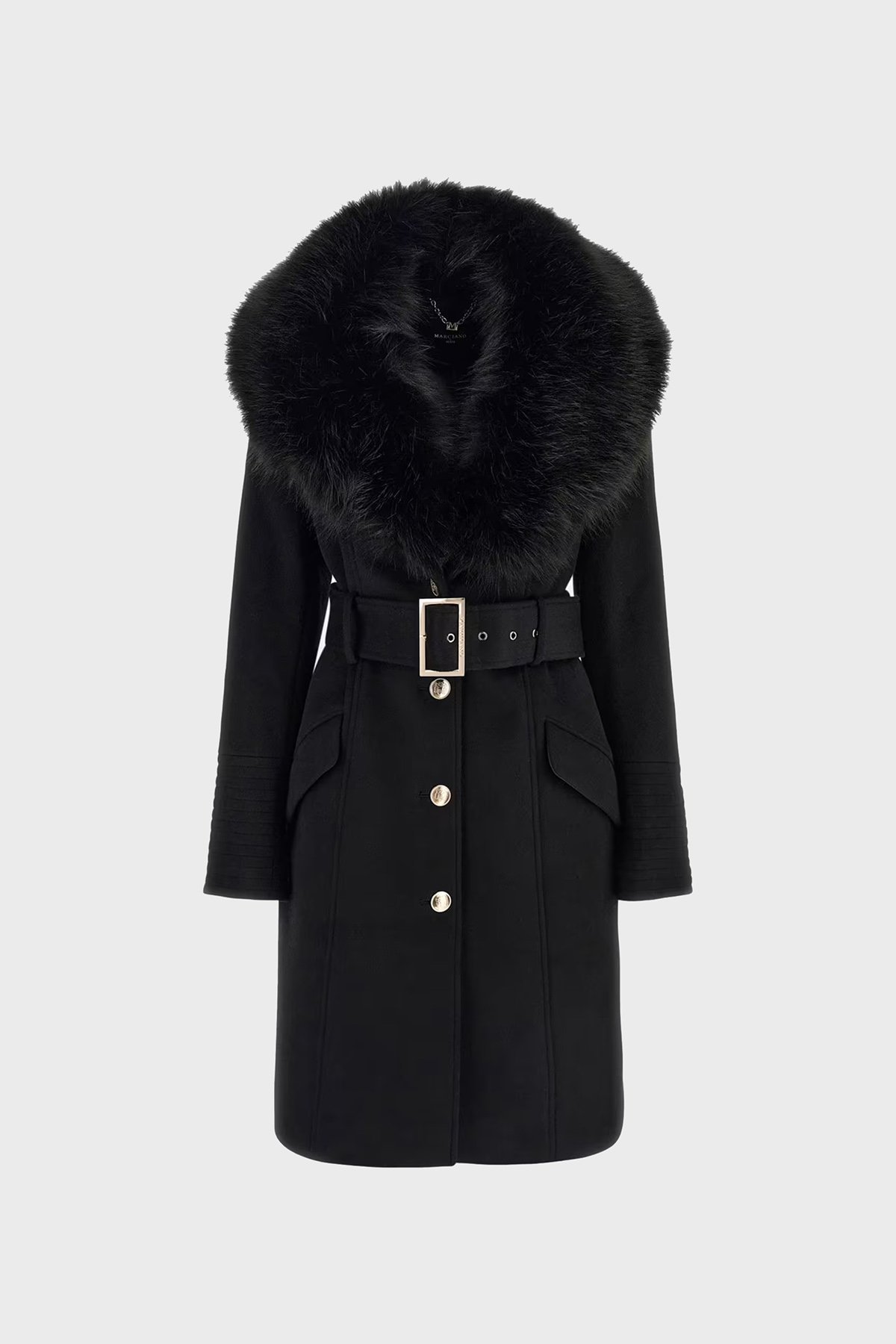Loreta Regular Fit Kemerli Çıkarılabilir Peluş Yaka 4BGL041799Z Bayan Kaban 4BGL04 1799Z JBLK SİYAH