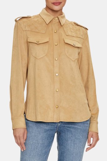 Ls Margot Logolu Slim Fit W4YH0CWG6T0 Bayan Gömlek W4YH0C WG6T0 F1AT TABA