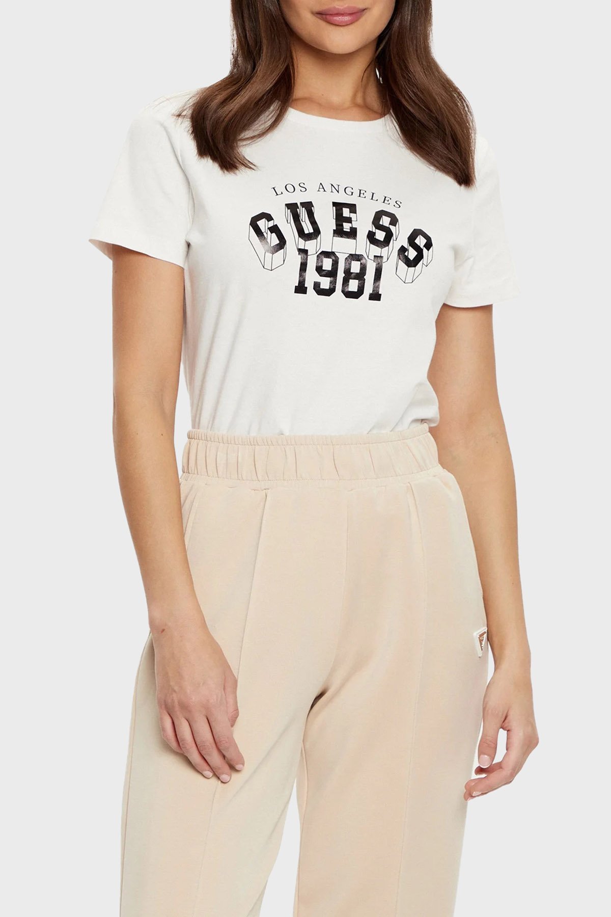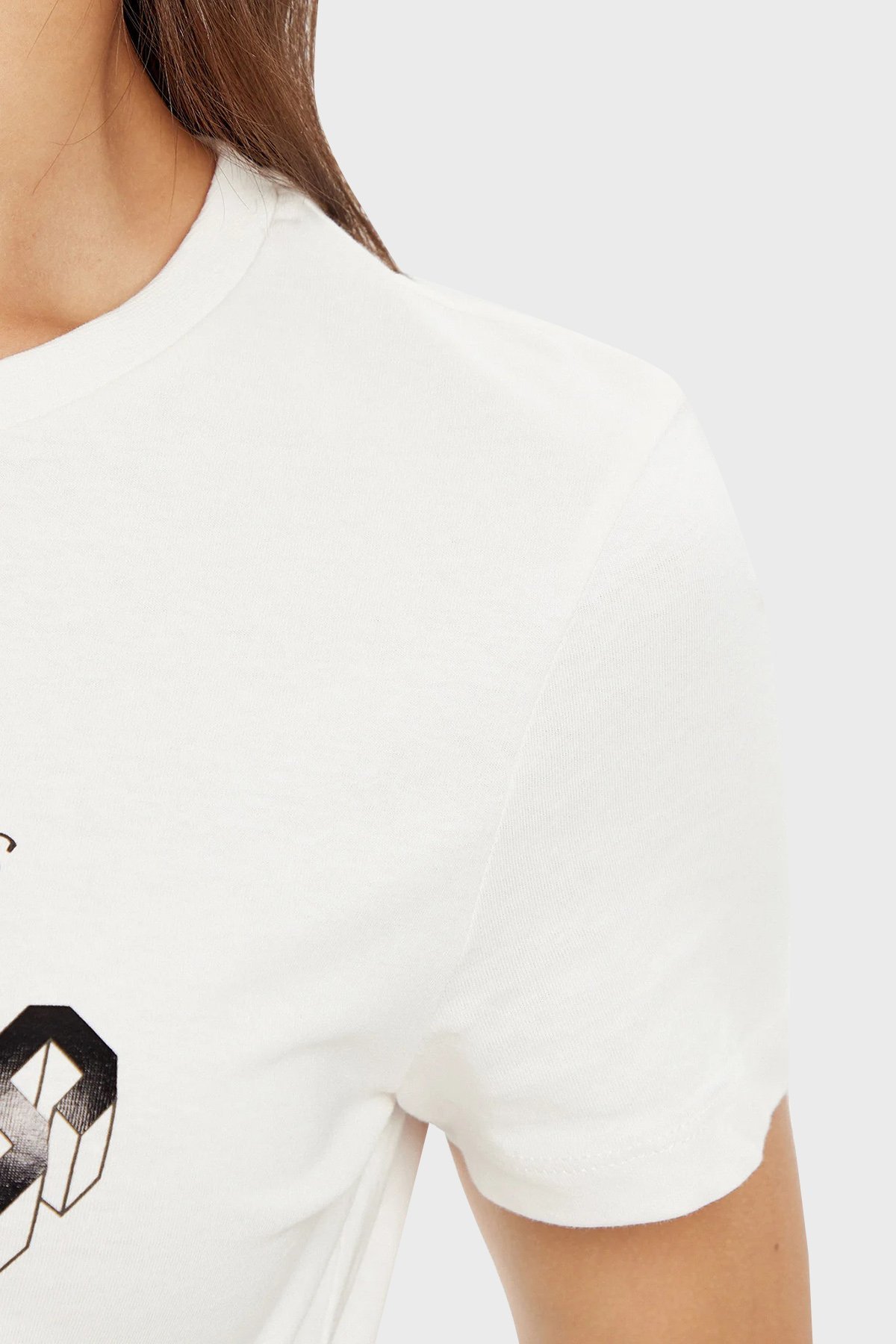 Martina % 100 Pamuk Regular Fit Bisiklet Yaka Logolu V5RI06I3Z14 Bayan T Shirt V5RI06 I3Z14 G6K5 EKRU