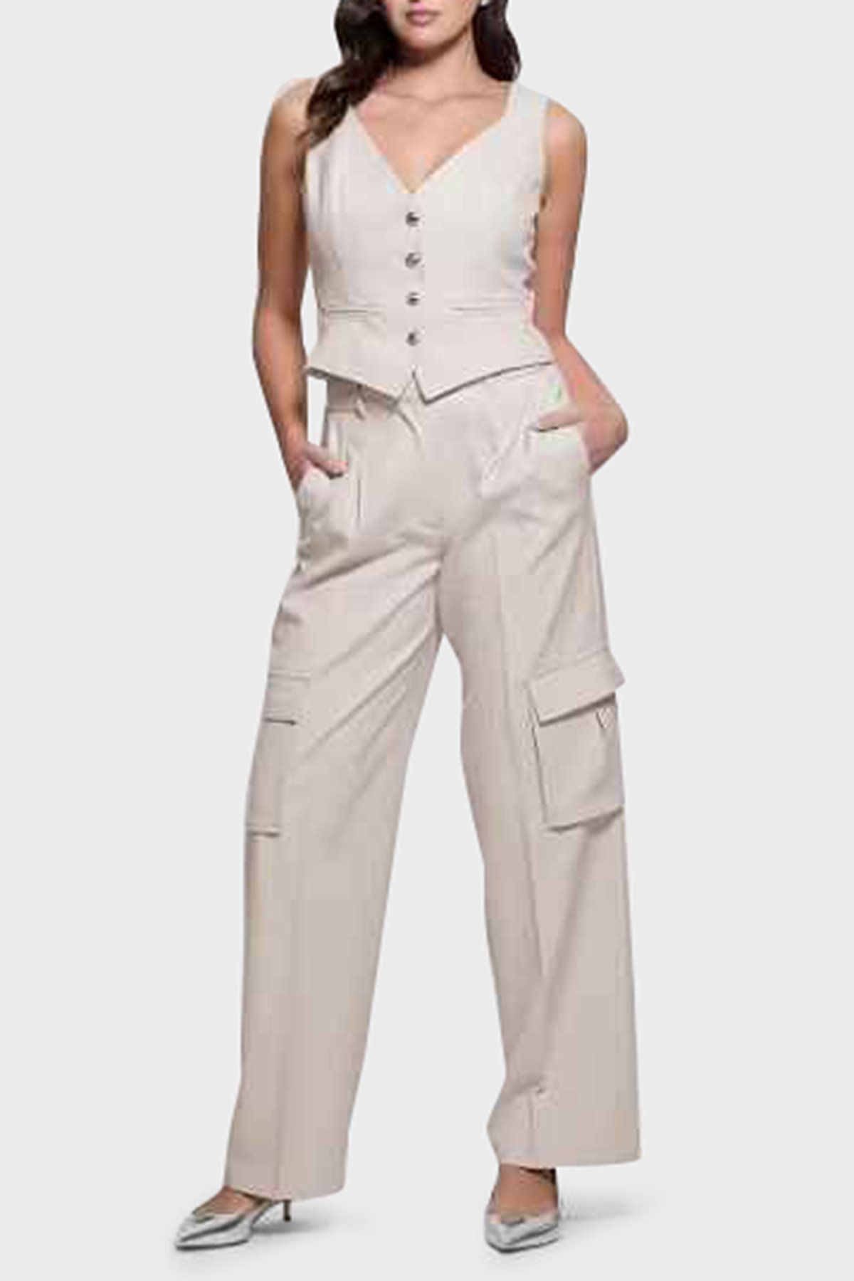 Matea Regular Fit Yüksek Bel Bol Paça Kargo W5RB41WGX02 Bayan Pantolon W5RB41 WGX02 F9AW BEJ