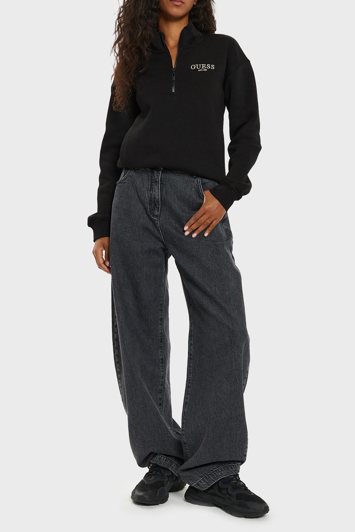 Midge Pamuklu Regular Fit Yarım Fermuarlı Dik Yaka V4BQ18KCHX0 Bayan Sweat V4BQ18 KCHX0 JBLK SİYAH