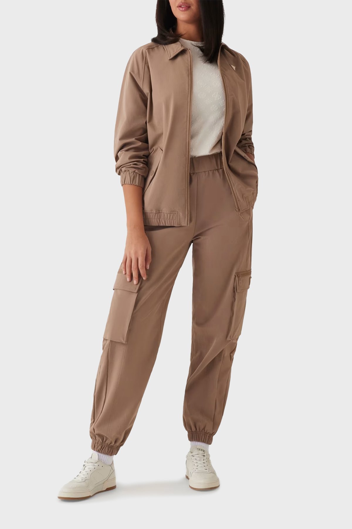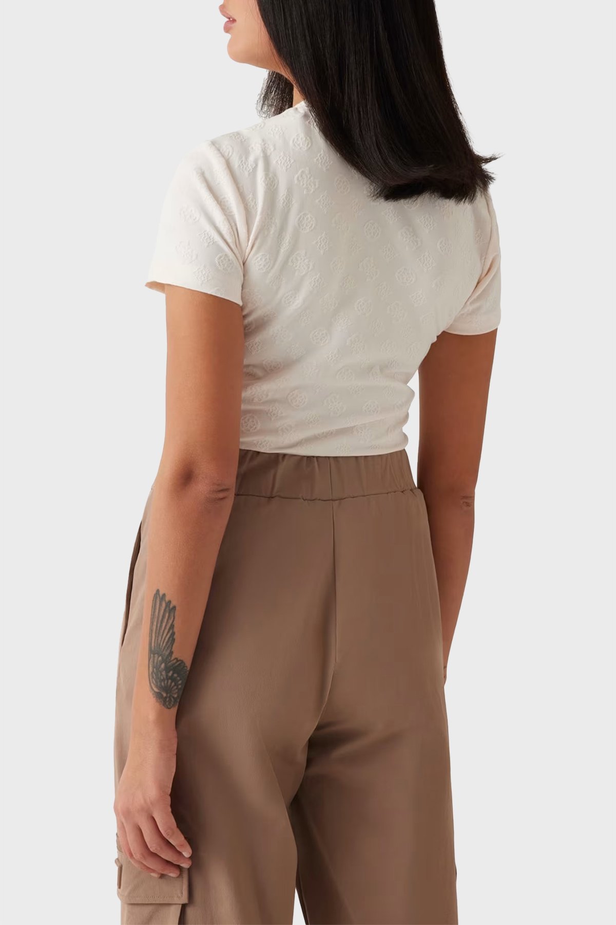 Monica Tamamı 4G Logolu Slim Fit Bisiklet Yaka V5RI02KCLG2 Bayan T Shirt V5RI02 KCLG2 P6EB EKRU
