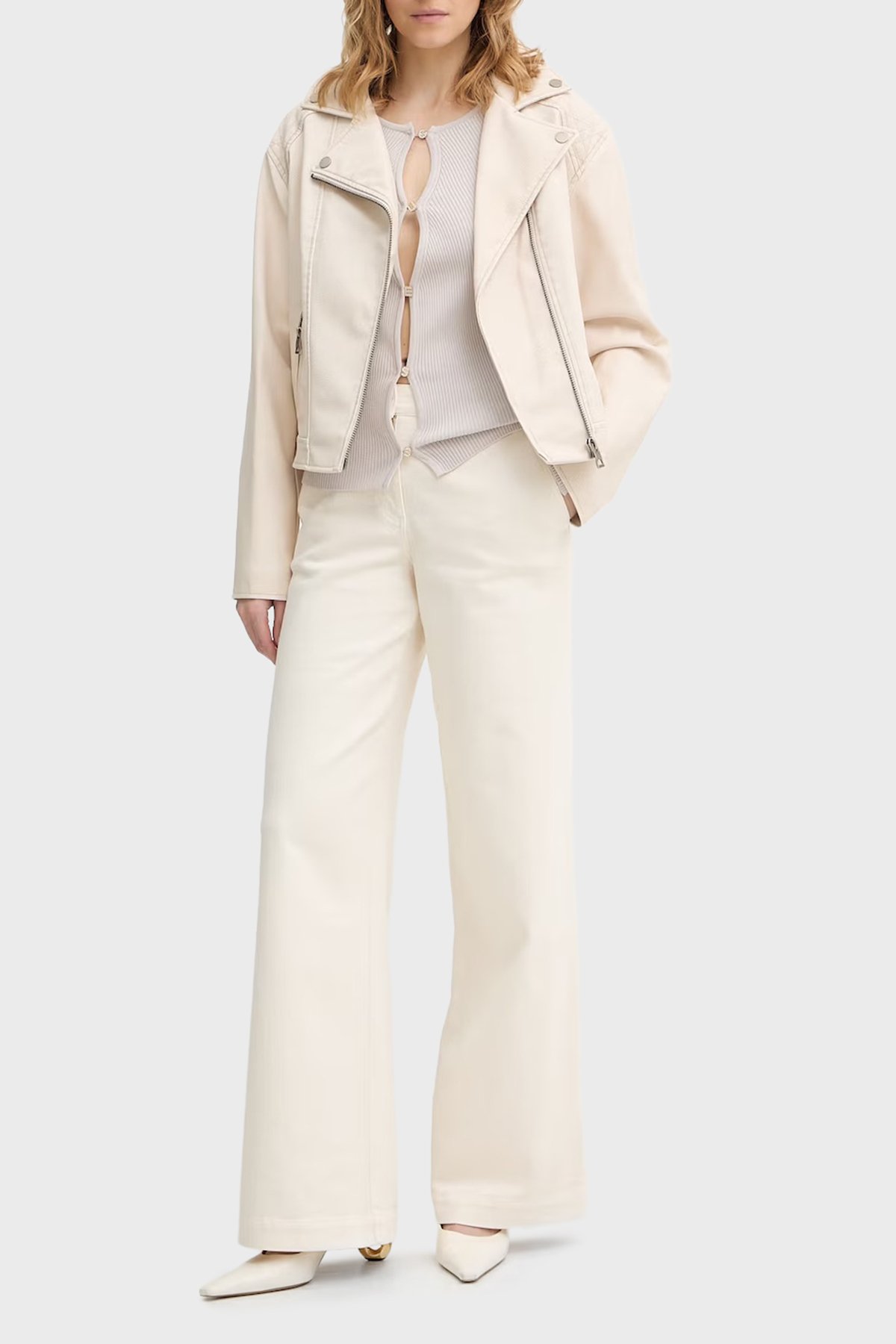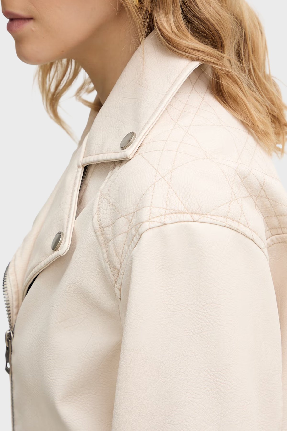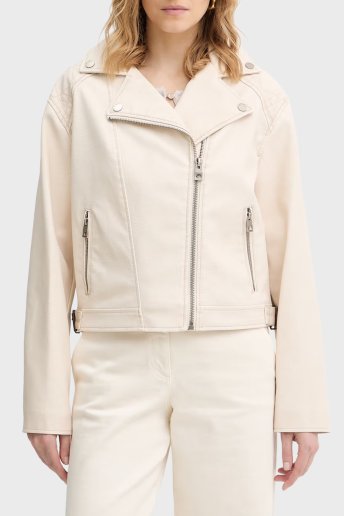 Nada Slim Fit Kruvaze Yaka Kemer Detaylı Biker W6RL09WH1X0 Bayan Ceket W6RL09 WH1X0 G1FG BEJ