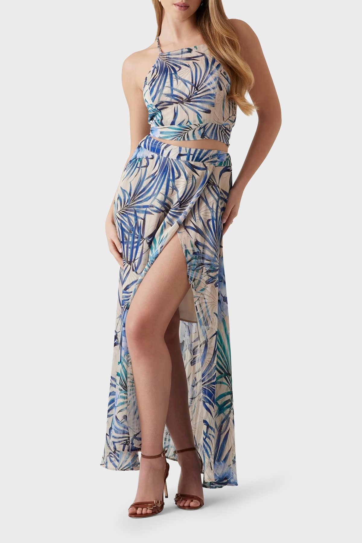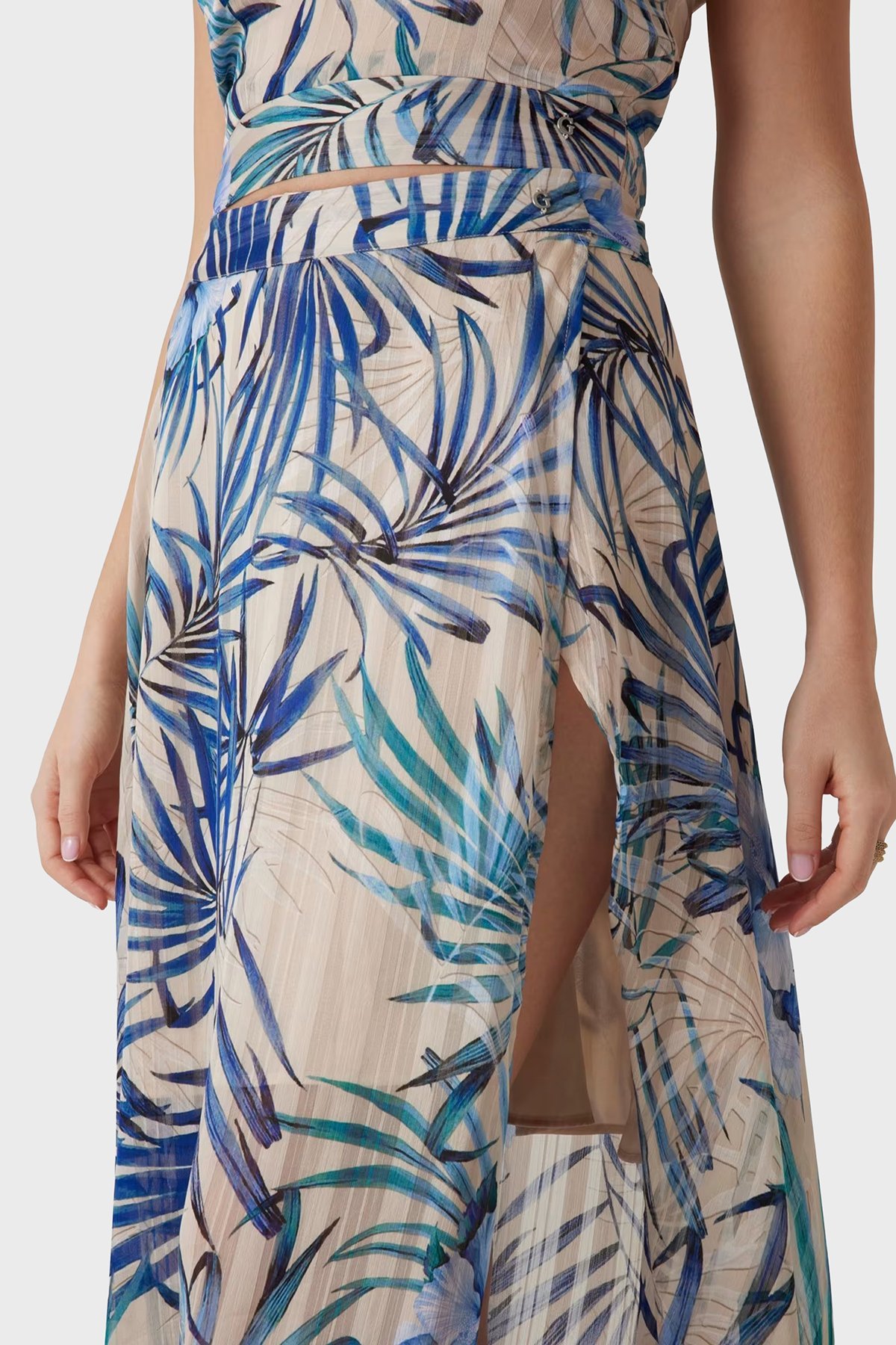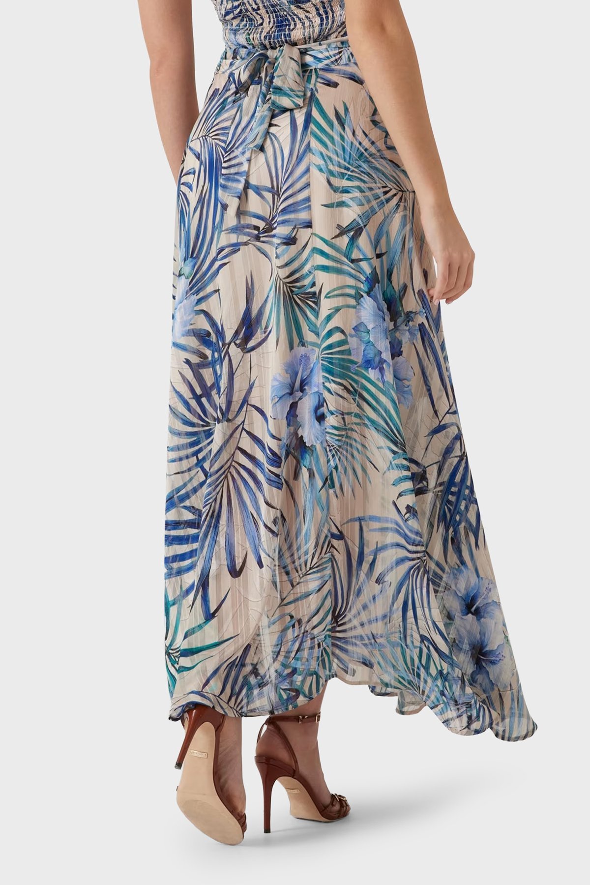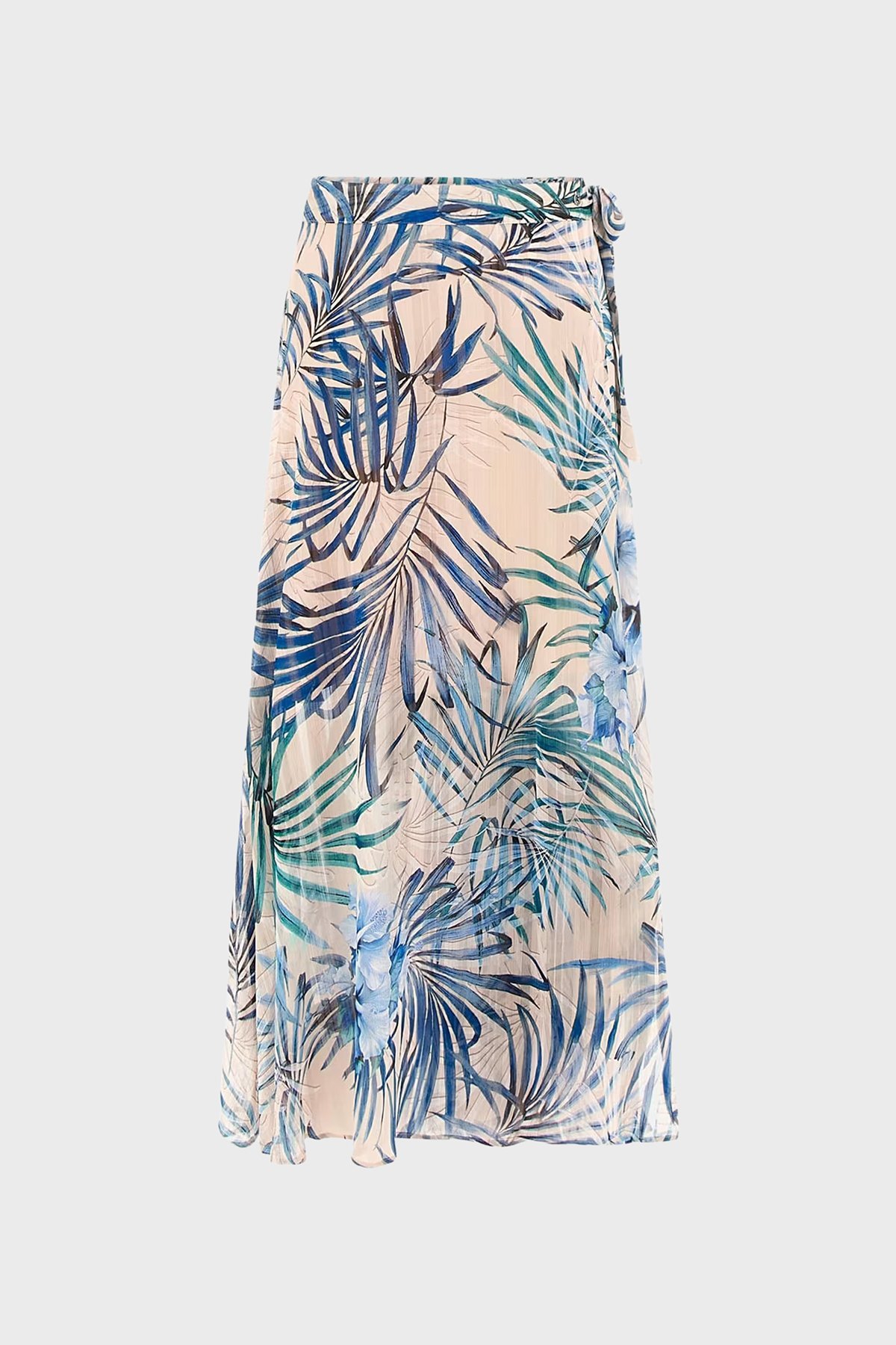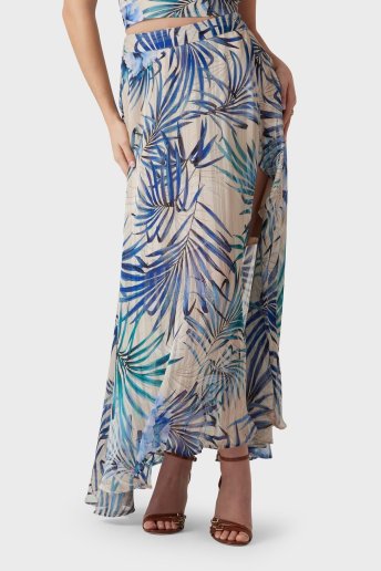 New Çiçek Desenli Dökümlü Yırtmaçlı Midi Boy W5GD66WH9Z2 Bayan Etek W5GD66 WH9Z2 P7VM KREM-MAVİ