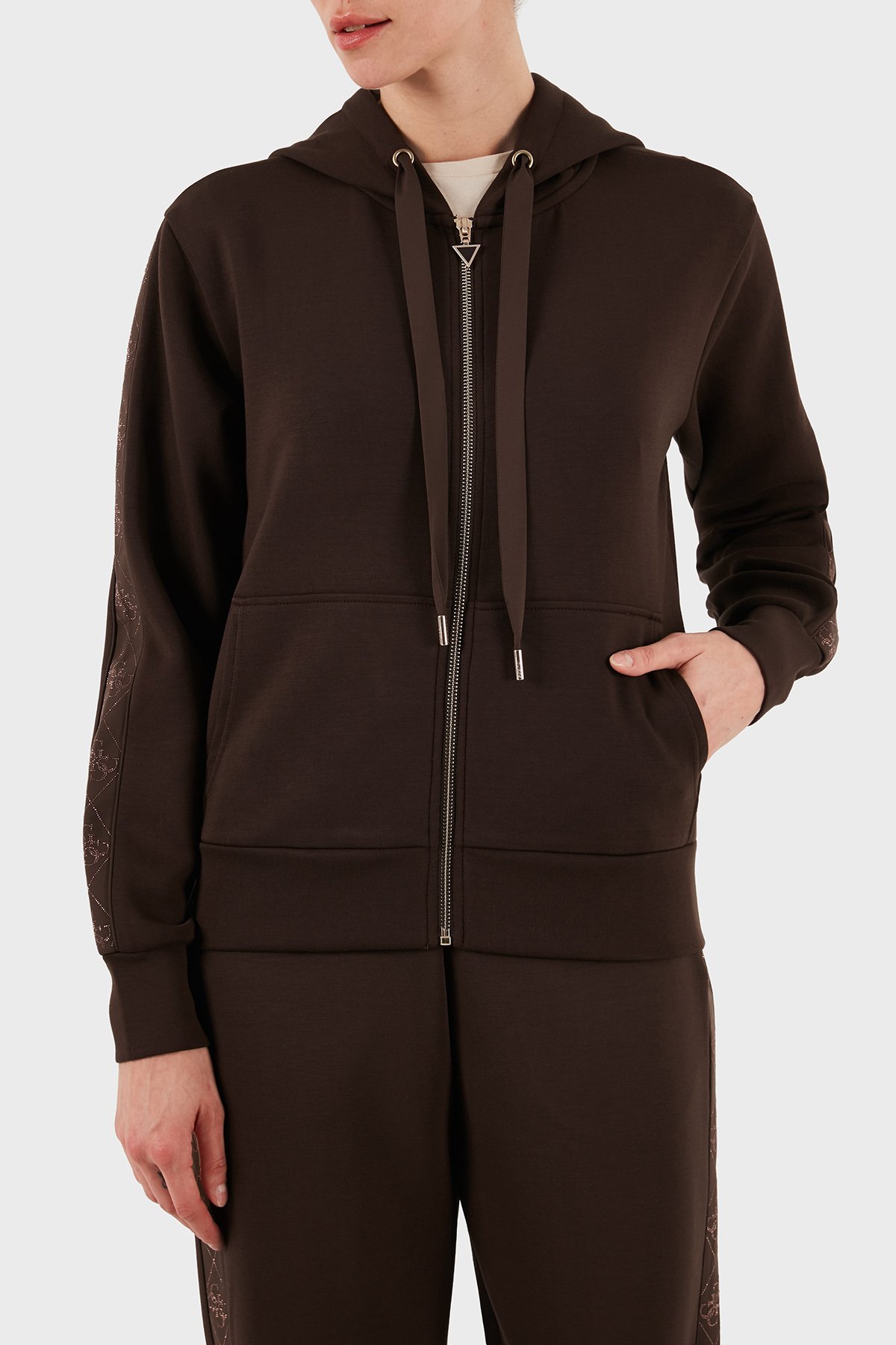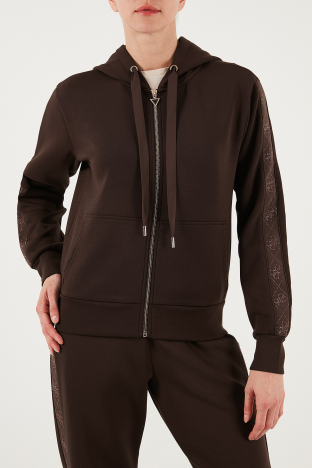 New Hooded Regular Fit Kapüşonlu Yaka Logolu Fermuarlı W5YQ05KBYE2 Bayan Sweat W5YQ05 KBYE2 G1EB KAHVE