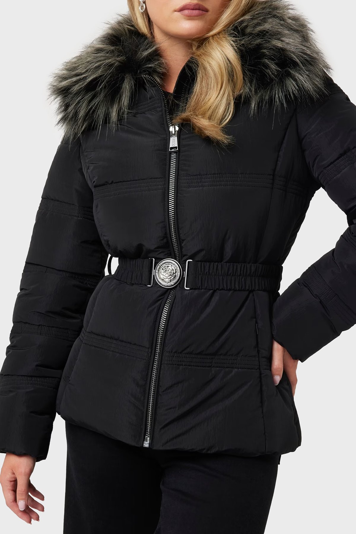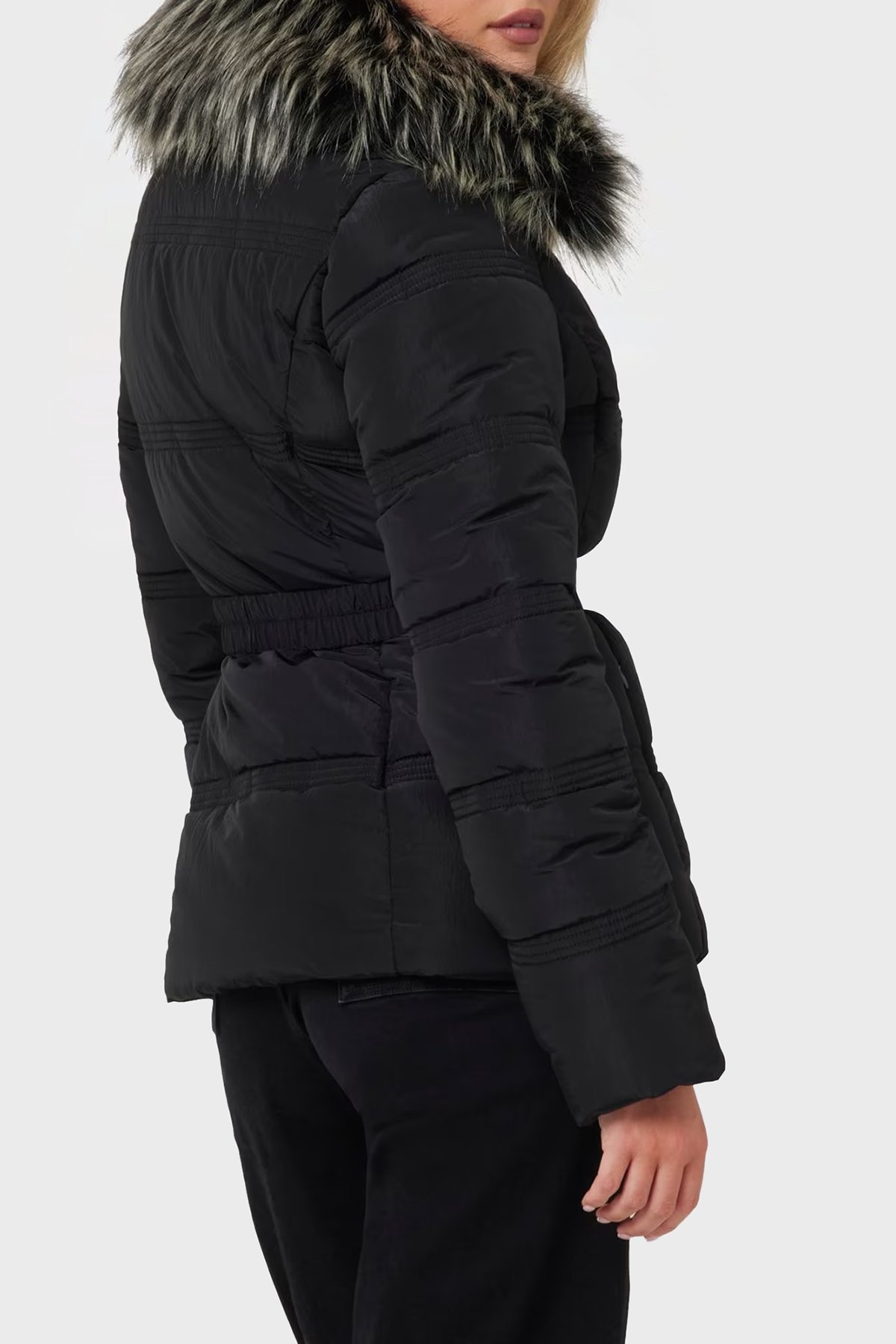 New Marisol Slim Fit Suya Dayanıklı Kürklü Şişme W4BL43WGK22 Bayan Mont W4BL43 WGK22 JBLK SİYAH
