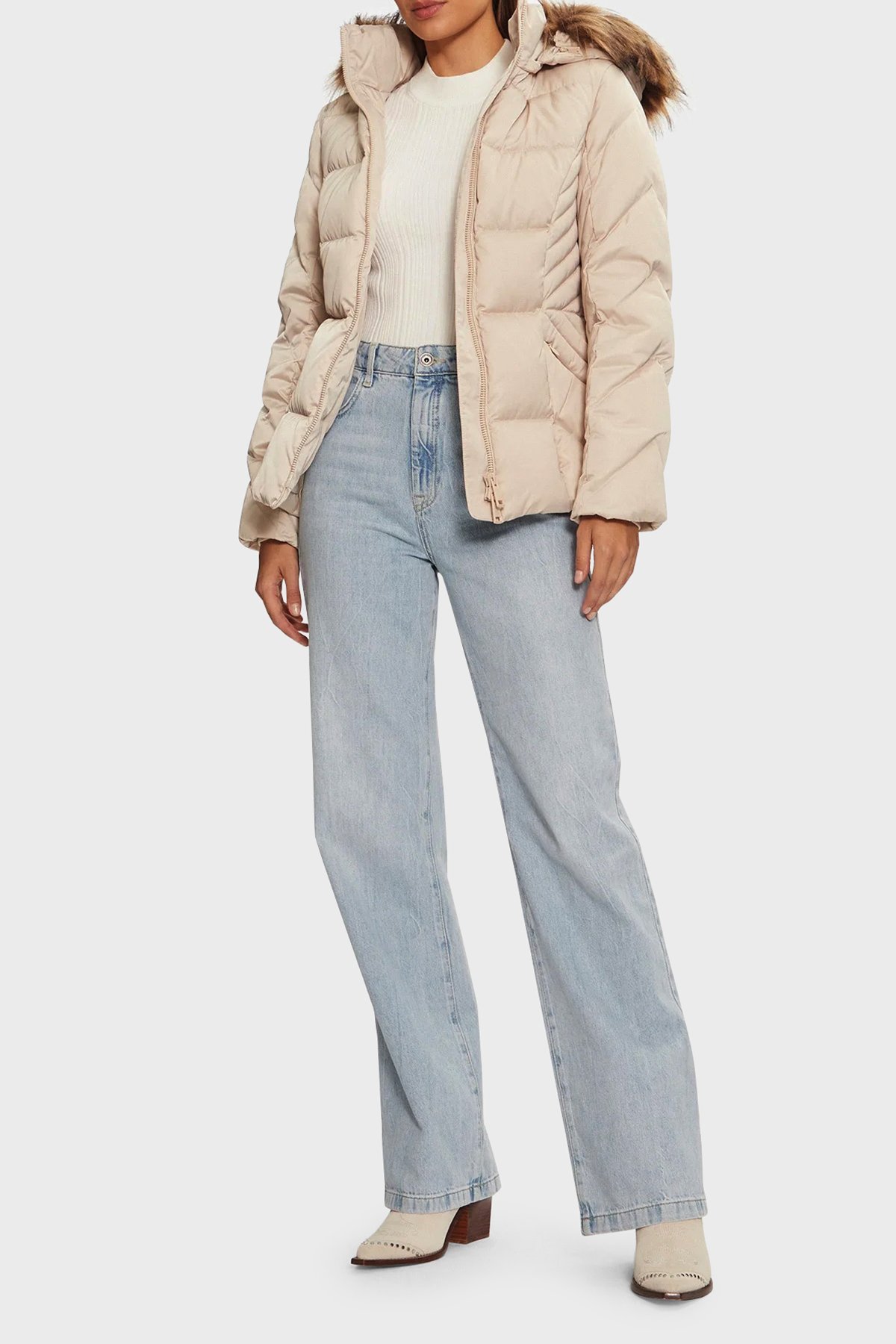 New Olga Kuş Tüyü Dolgulu Çıkarılabilir Kapüşonlu Şişme W4BL53WEX52 Bayan Mont W4BL53 WEX52 G1M5 EKRU