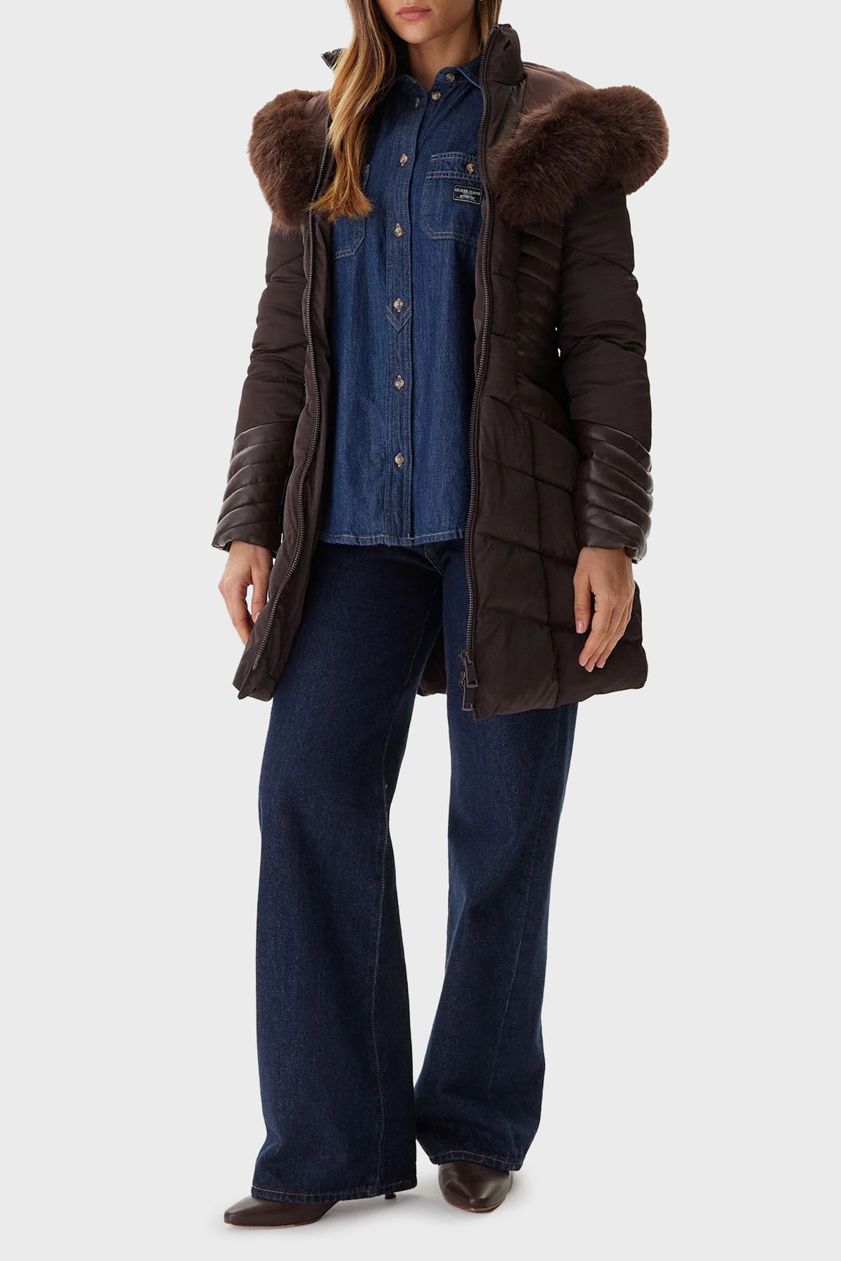 New Oxana Regular Fit Fermuarlı Kapüşonlu Şişme W4BL61WGLZ0 Bayan Mont W4BL61 WGLZ0 G1EB KAHVE