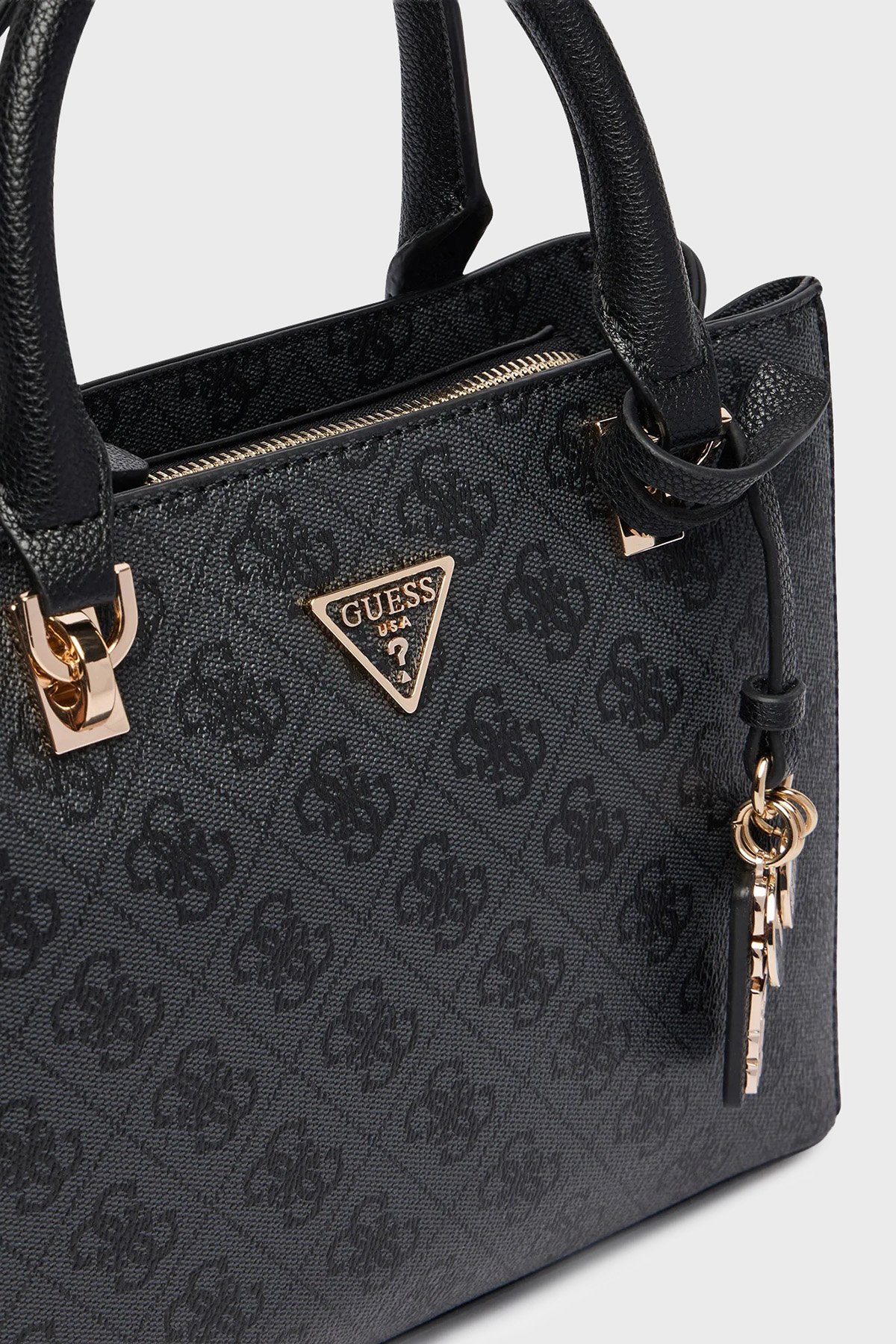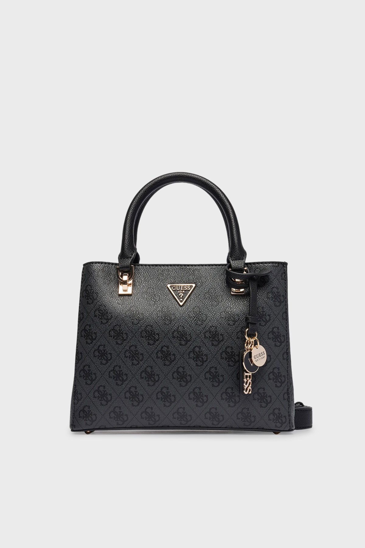 Detaylar: - Sapının alt tarafında logolu tak çıkar charm.- Fermuarlı iç ve arka cepler.