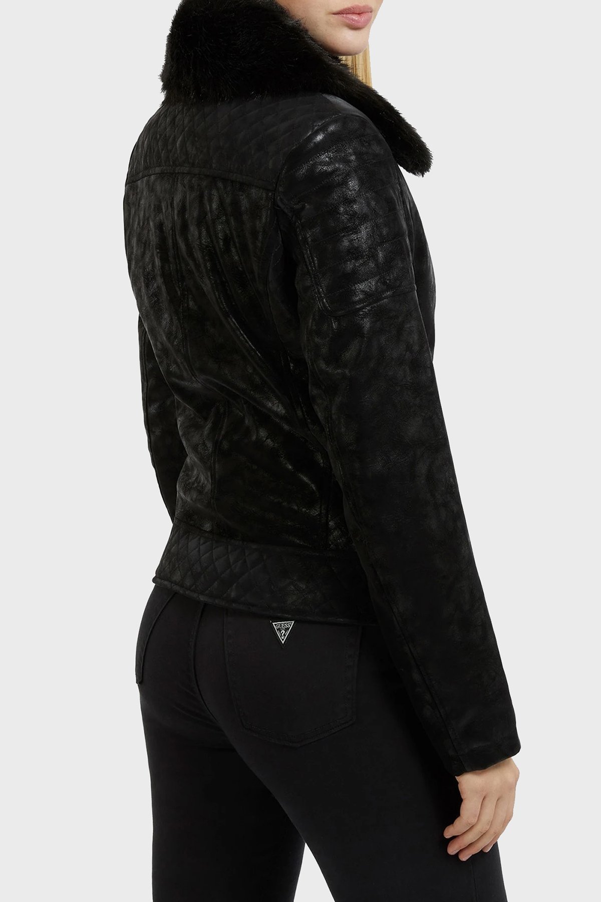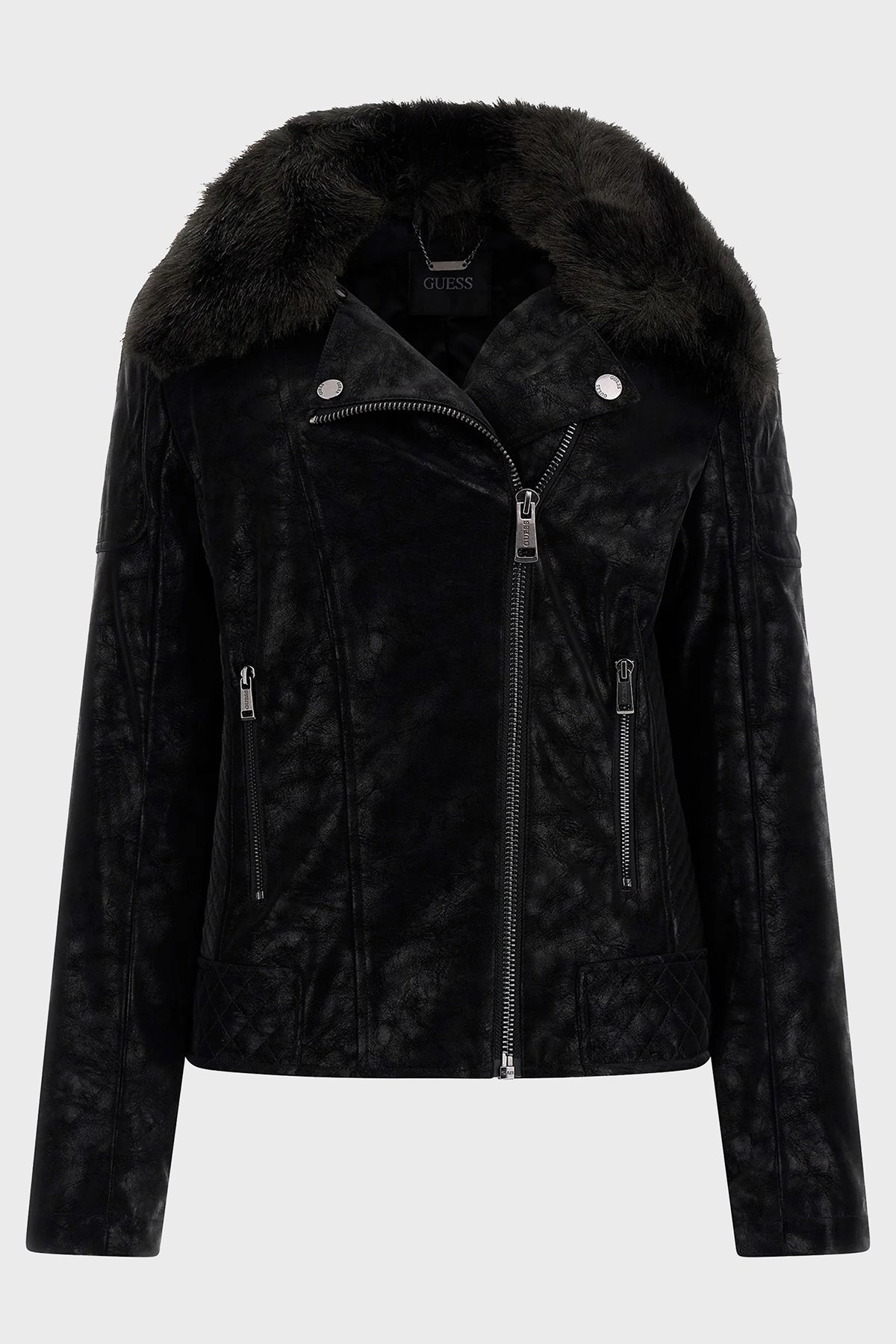 Olivia Çıkatılabilir Suni Kürklü Fermuarlı Slim Fit Deri Bayan Mont W2BL62WE5V0 JBLK SİYAH