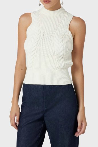 Ozuna Slim Fit Yarım Balıkçı Yaka Kolsuz Örgü 3BGR395618Z Bayan Kazak 3BGR39 5618Z G1CR BEYAZ