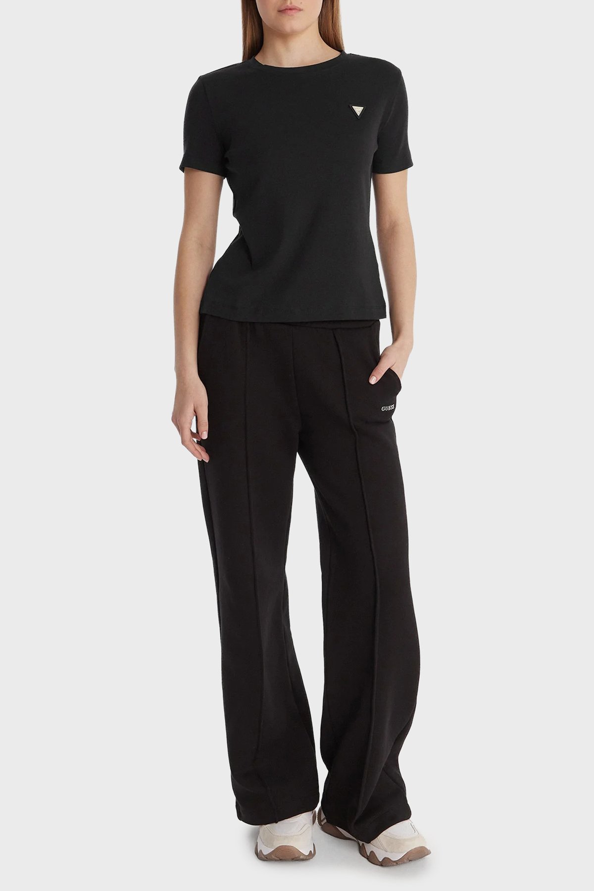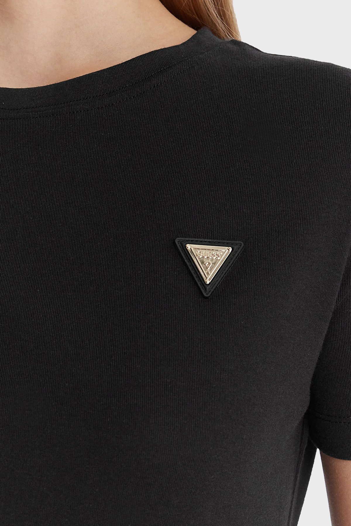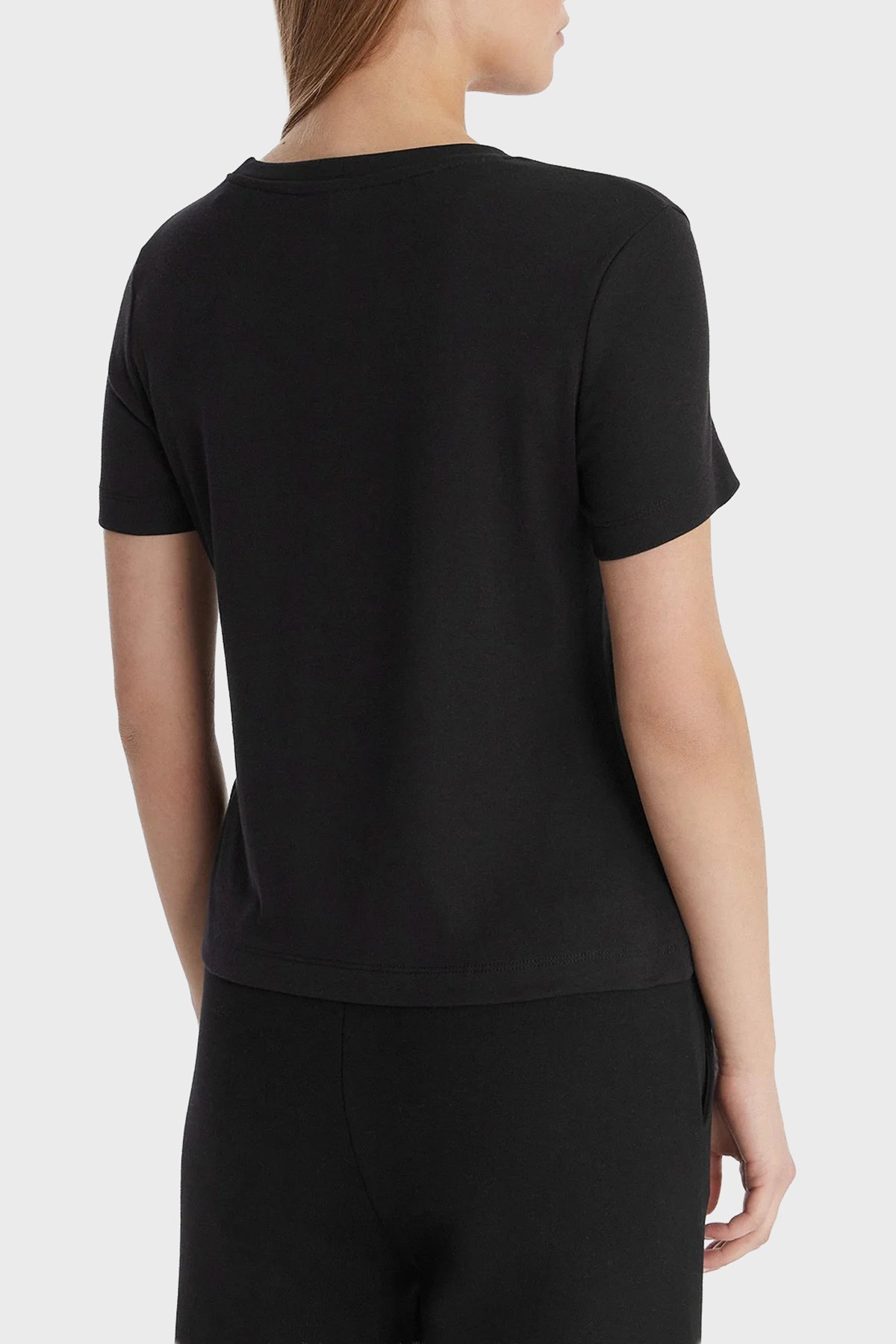 Pamuk Karışımlı Slim Fit Bisiklet Yaka Logolu V6RI17KD741 Bayan T Shirt V6RI17 KD741 JBLK SİYAH