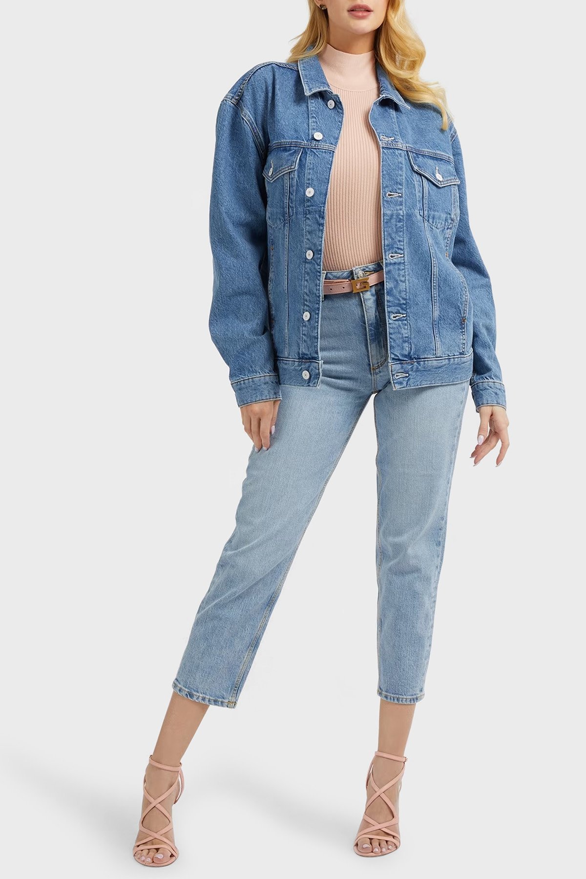 Pamuklu Yüksek Bel Düz Paça Mom Jeans W2YA21 D4NH6 Bayan Kot Pantolon W2YA21D4NH6 AULI AÇIK MAVİ