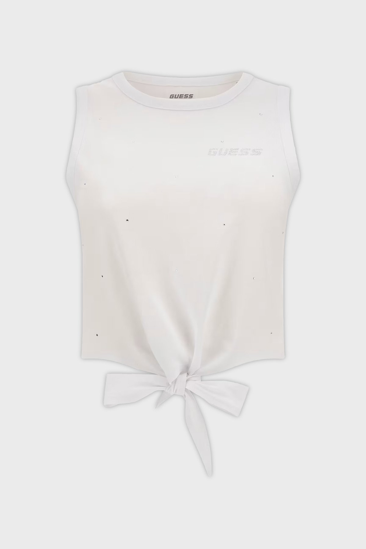 Primula Pamuklu Taşlı Boxy Fit Bağlama Detaylı Crop T Shirt V5GI01I3Z14 Bayan Top V5GI01 I3Z14 G011 BEYAZ