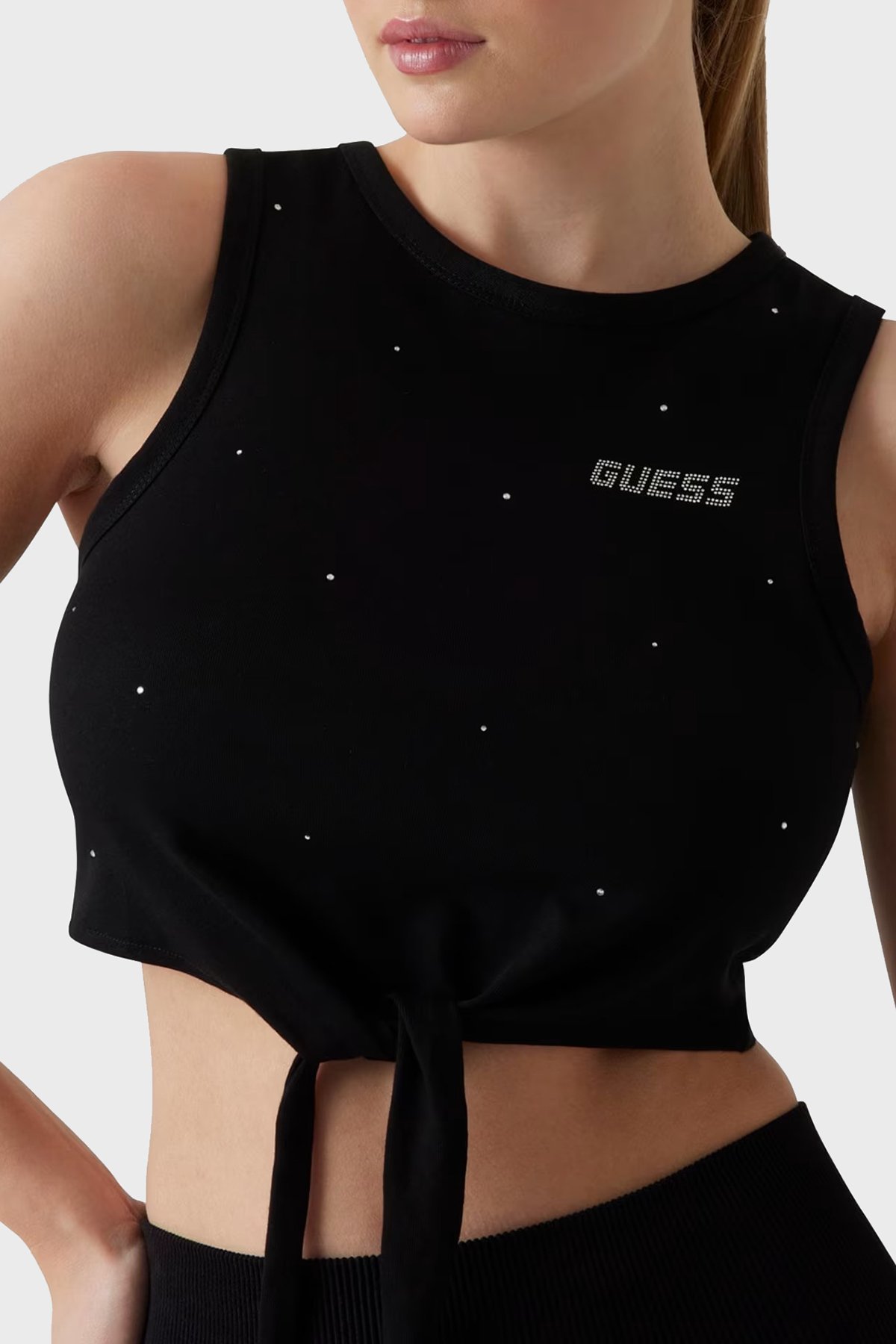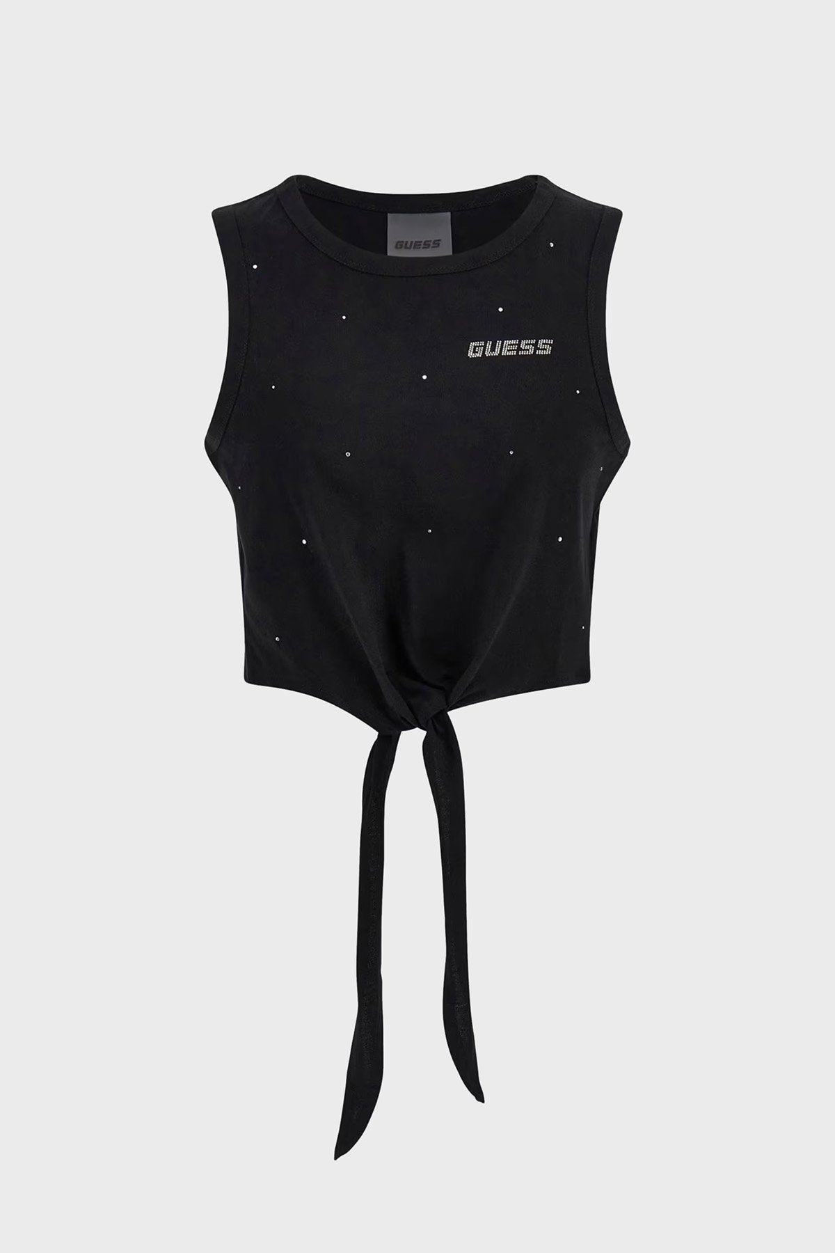 Primula Pamuklu Taşlı Boxy Fit Bağlama Detaylı Crop T Shirt V5GI01I3Z14 Bayan Top V5GI01 I3Z14 JBLK SİYAH