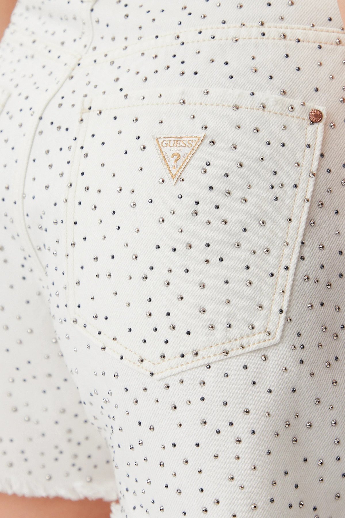 Relaxed Yüksek Bel Pamuklu Taşlı W5GD74D5N91 Bayan Short W5GD74 D5N91 GWBL BEYAZ