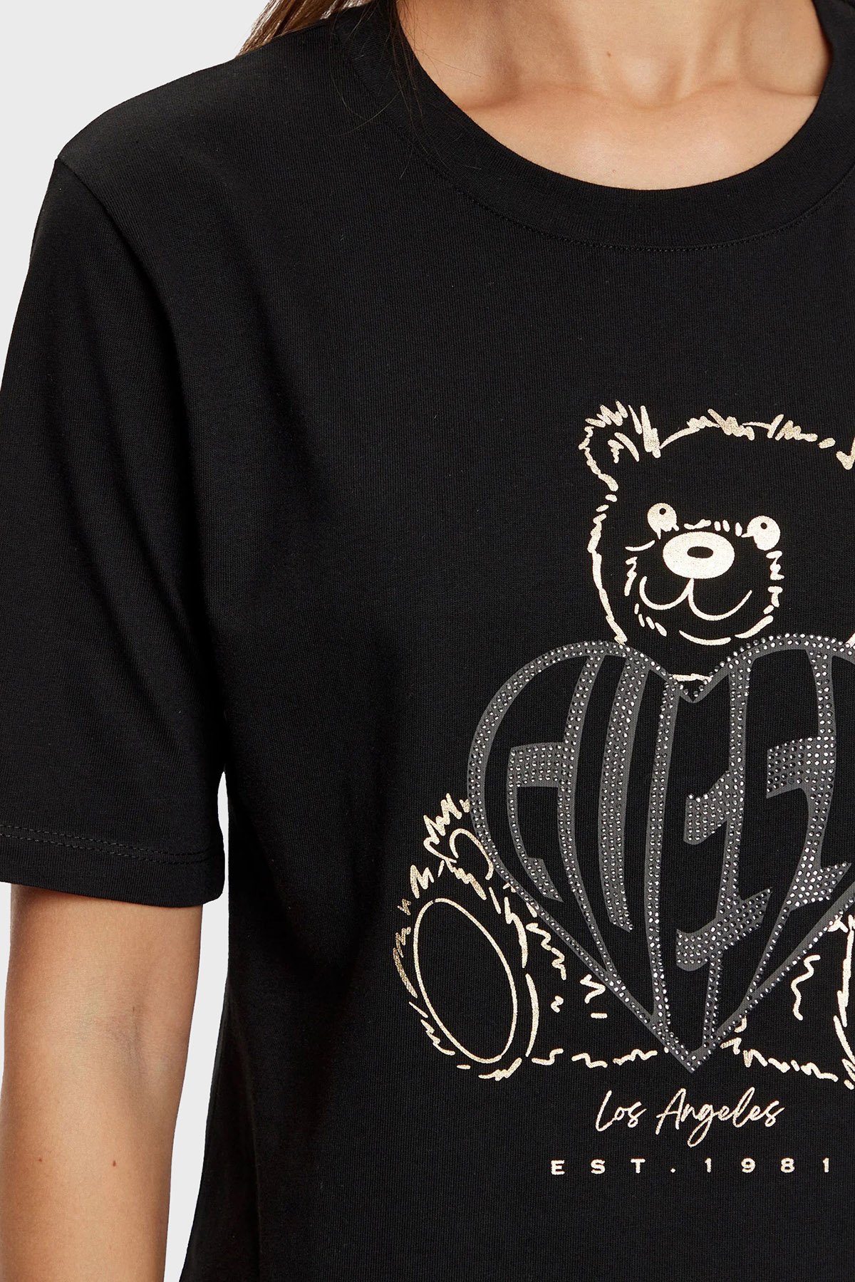 Rhinestones % 100 Pamuk Regular Fit Taşlı Logolu V5RI09I3Z14 Bayan T Shirt V5RI09 I3Z14 JBLK SİYAH
