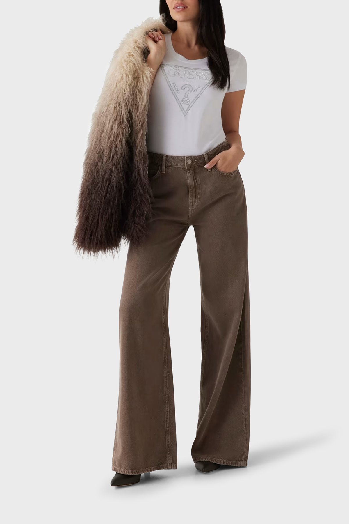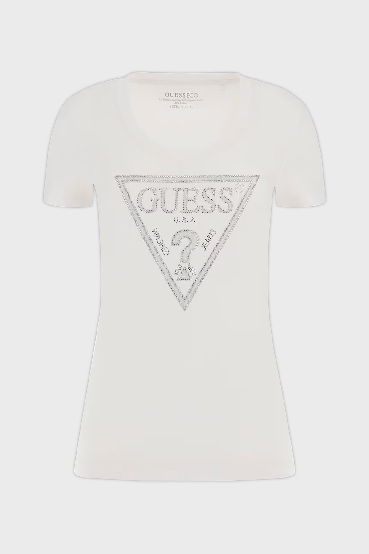 S s Cn Shıny Pamuklu Slim Fit Taşlı Üçgen Logolu W5RI11J1314 Bayan T Shirt W5RI11 J1314 G011 BEYAZ