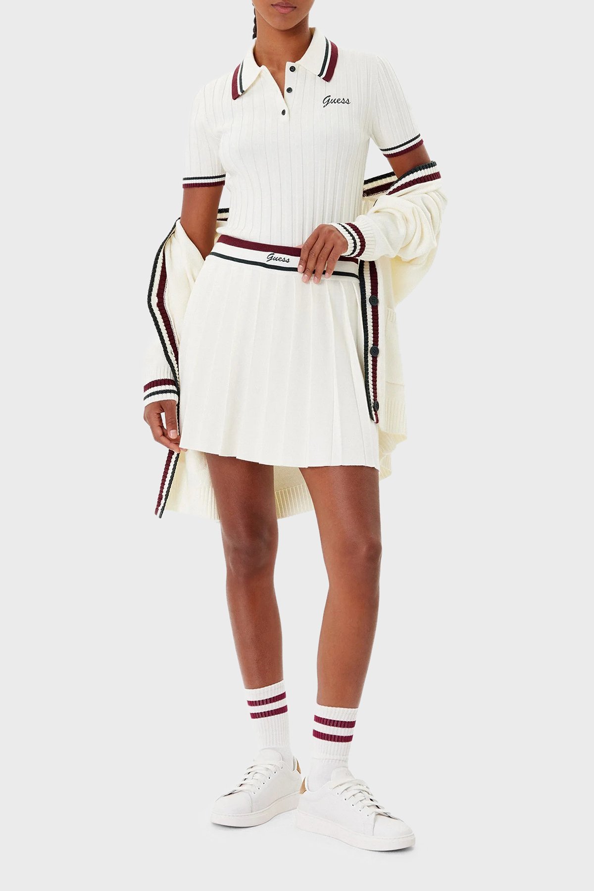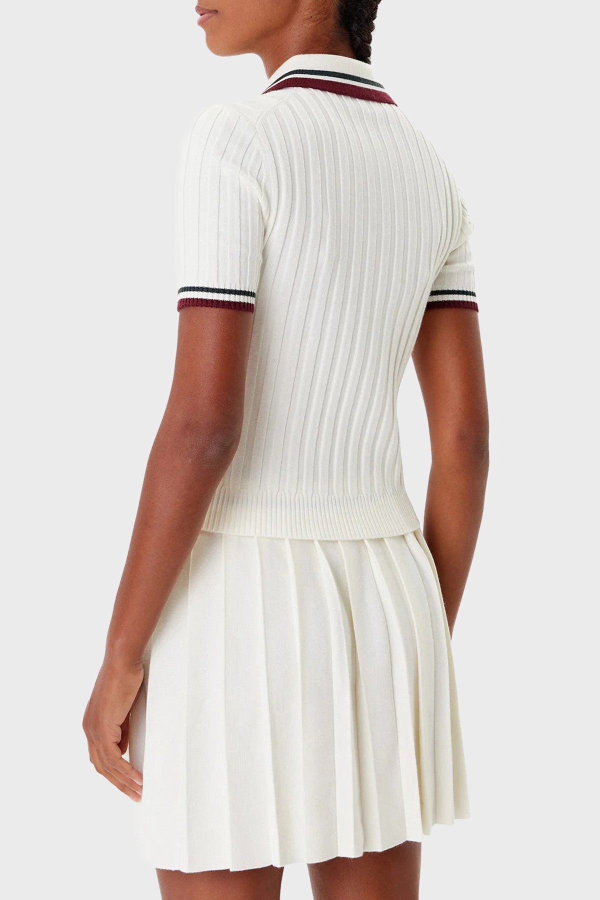 - Yaka ve manşetlerde kontrast renkli şeritler