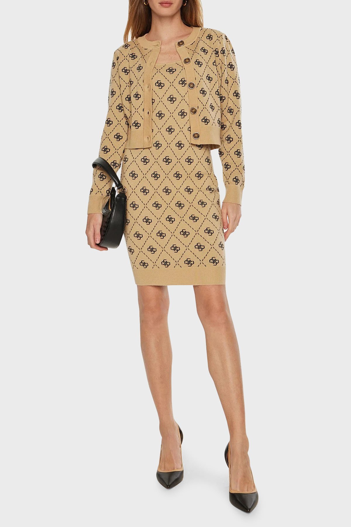 Sarah 4G Logo Desenli Kalın Askılı Fitted Fit Mini Triko W4BK98Z3JD2 Bayan Elbise W4BK98 Z3JD2 FN3N SÜTLÜ KAHVE