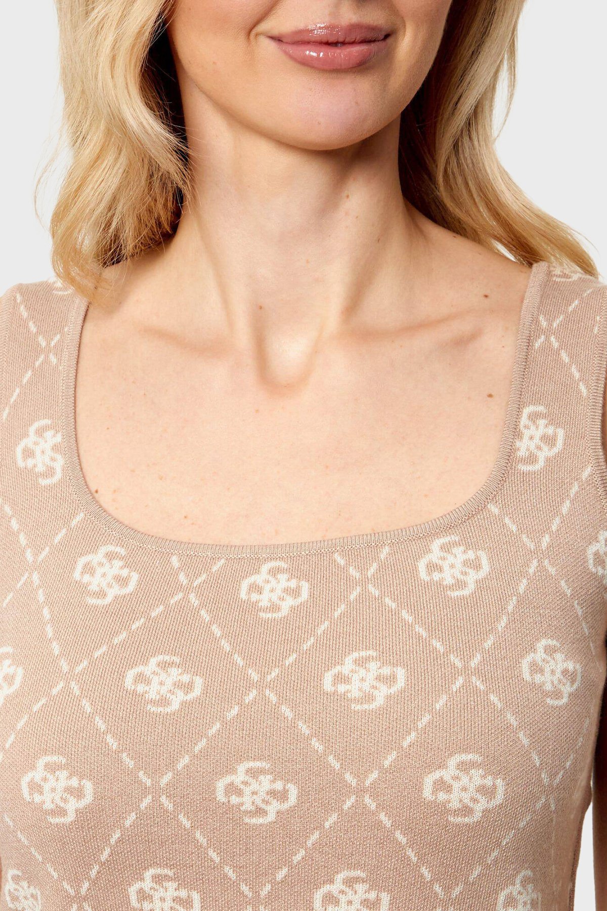 Sarah Yün Karışımlı Slim Fit 4G Logolu Yuvarlak Yaka Bayan Triko W4BR0C Z3JD2 FNJS KREM