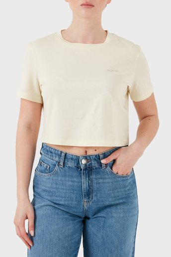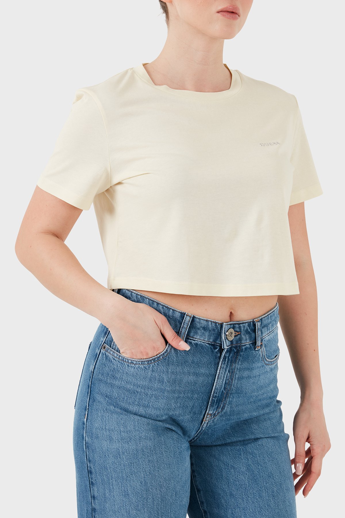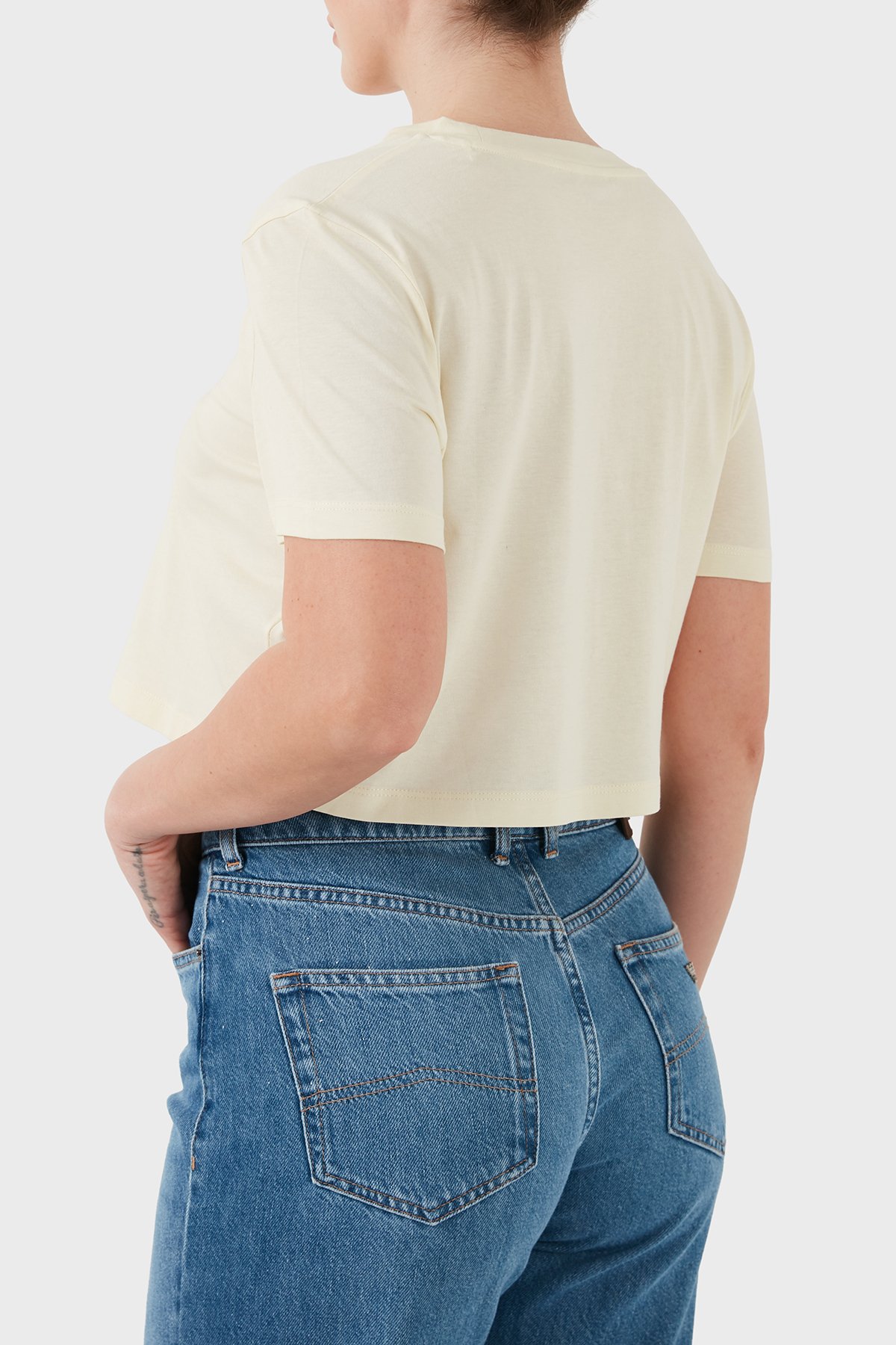 Selene % 100 Pamuk Boxy Fit Logolu Yuvarlak Yaka V6GI17K2984 Kadın T Shirt V6GI17 K2984 G2N1 SARI