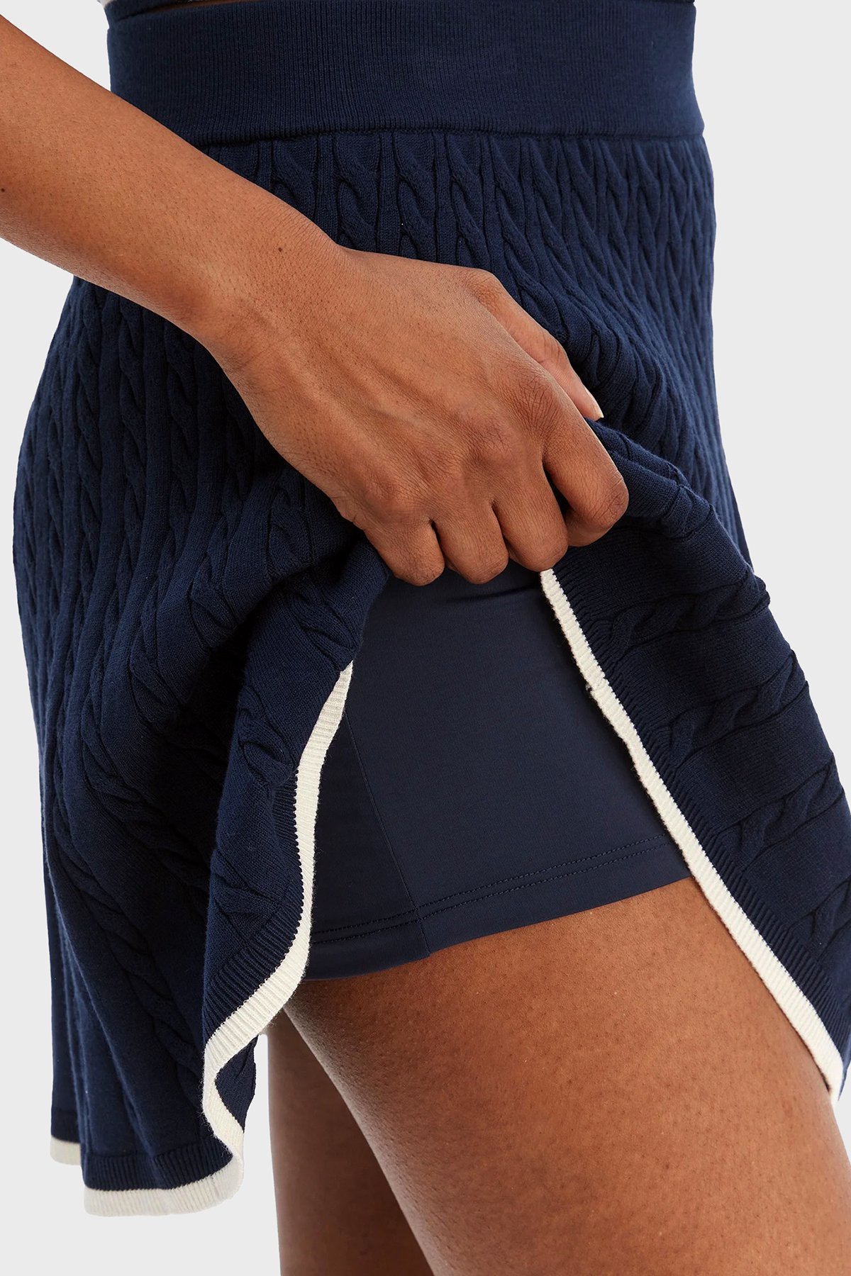 Shari Regular Fit Örgü Detaylı Triko Pileli V6RD07Z4652 Bayan Etek V6RD07 Z4652 G7R1 MAVİ
