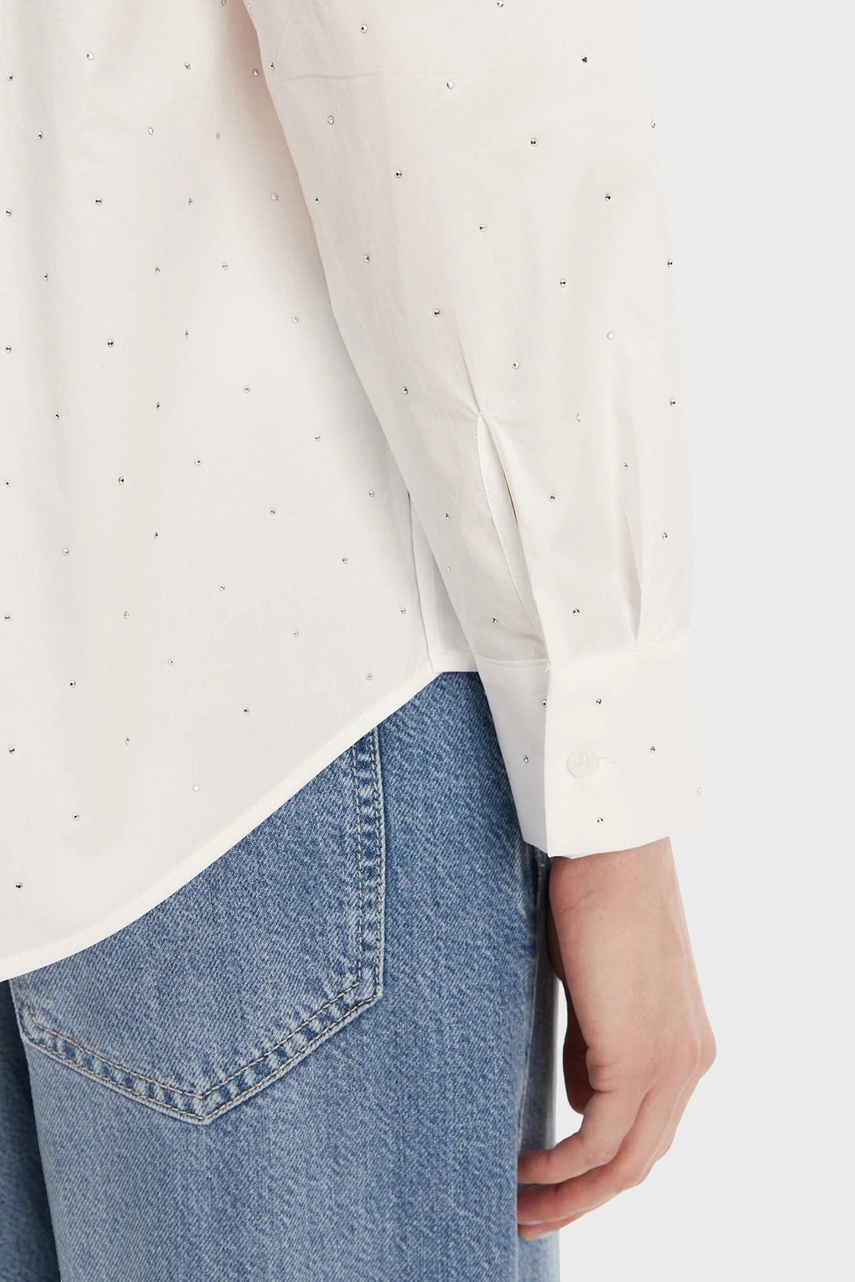 Silvia % 100 Pamuk Taşlı Comfort Fit W5GH42WGWS0 Bayan Gömlek W5GH42 WGWS0 G011 BEYAZ