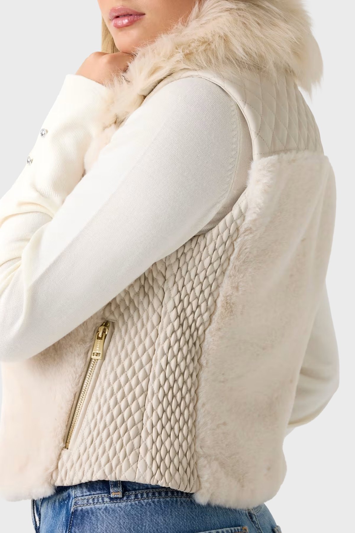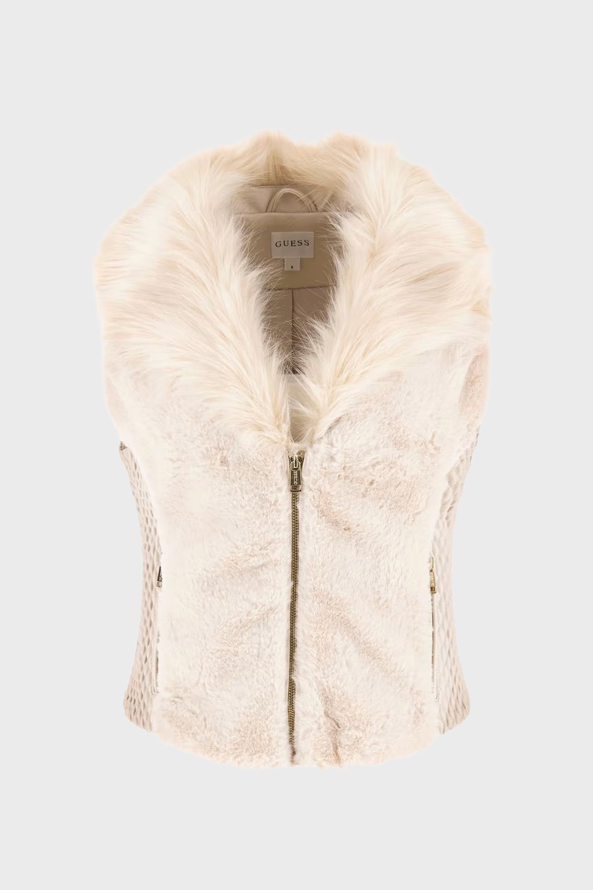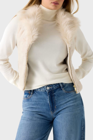 Sl Amari Regular Fit Yumuşak Tüylü Yaka Fermuarlı W5BL0IKCP70 Bayan Yelek W5BL0I KCP70 F14G KREM