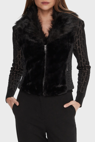 Sl Amari Regular Fit Yumuşak Tüylü Yaka Fermuarlı W5BL0IKCP70 Bayan Yelek W5BL0I KCP70 JTMU SİYAH