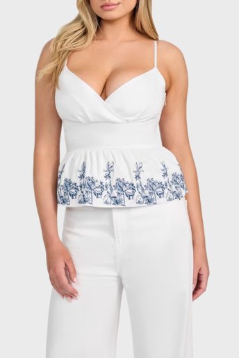 Sl Blanche Pamuklu Slim Fit Dekolteli Desenli W5GH1AWH5800 Bayan Top W5GH1A WH580 G011 BEYAZ