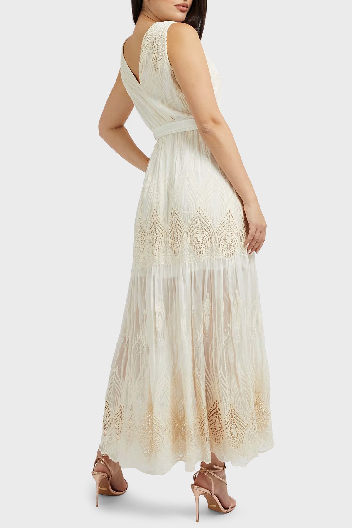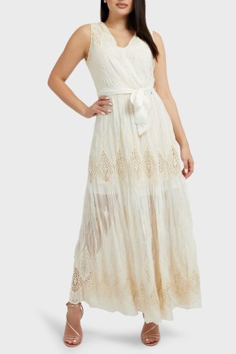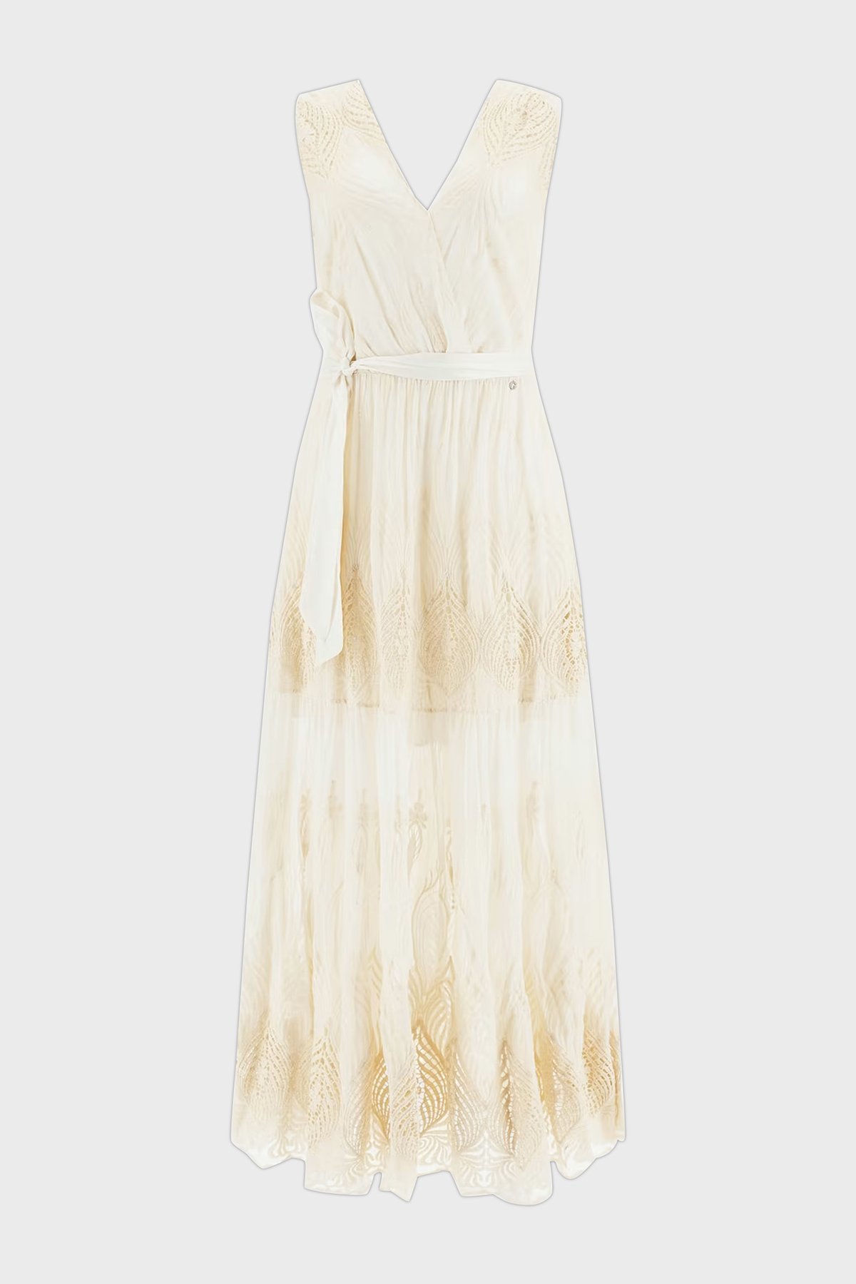 Sl İşlemeli İpek Karışımlı Dökümlü Maxi Transparan Pam Bayan Elbise W3GK42WFDB0 G012 BEJ