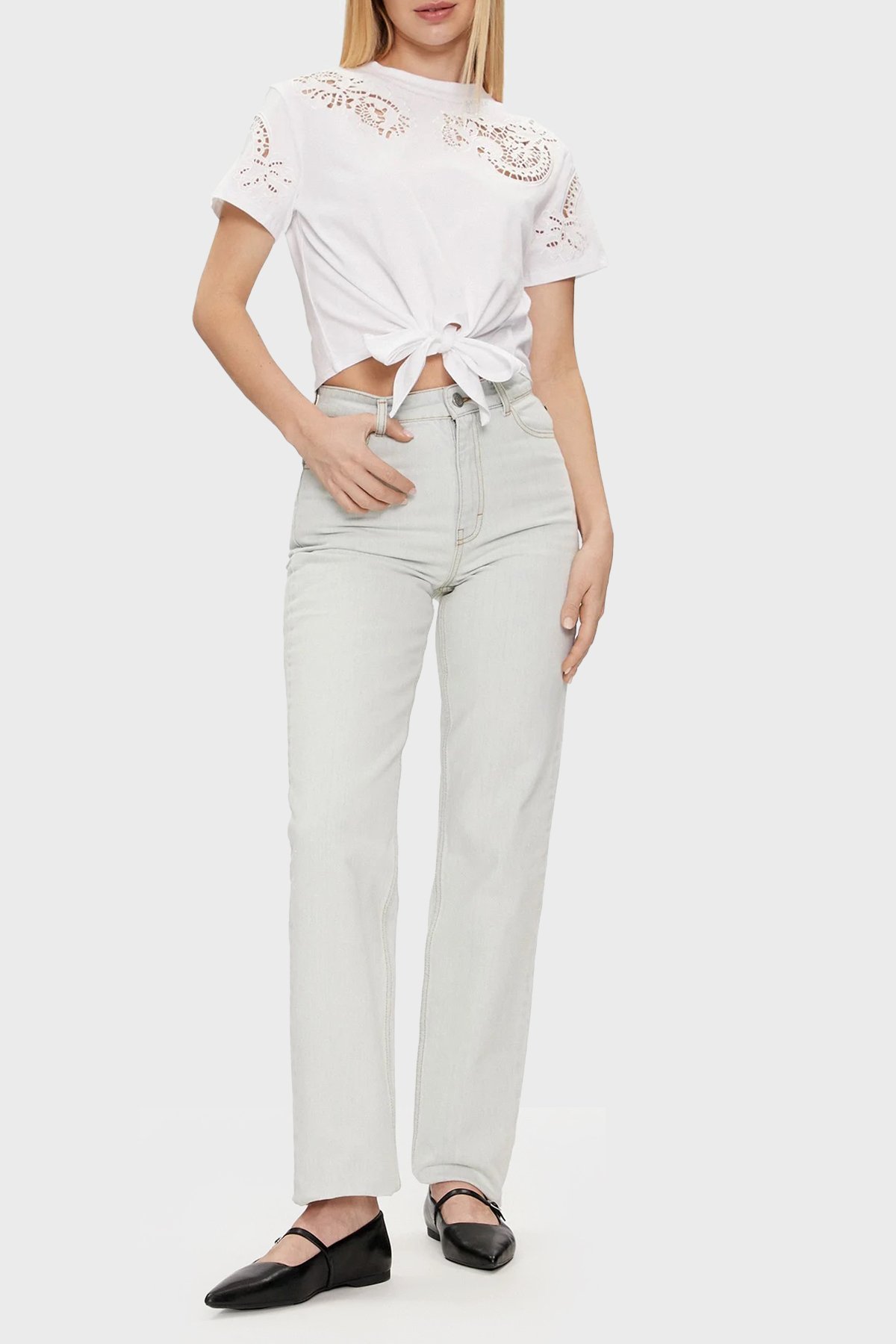 Ss Cn Ajour Relaxed Fit Bağlamalı Crop W4GI15I3Z14 Bayan T Shirt W4GI15 I3Z14 G011 BEYAZ