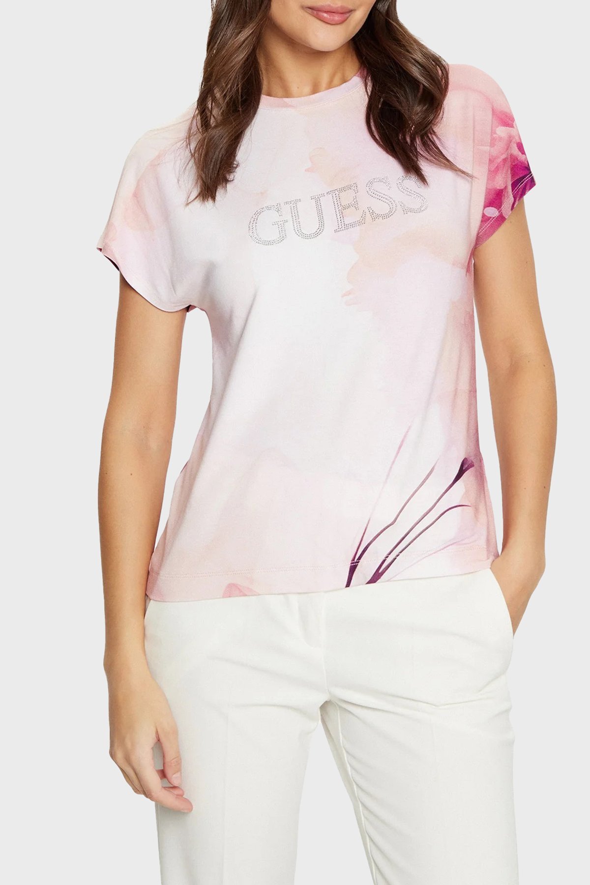 Ss Cn Logo Regular Fit Bisiklet Yaka W5RI09K68D2 Bayan T Shirt W5RI09 K68D2 F0D9 PEMBE