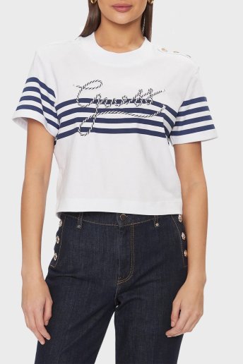 Ss Cn Marina Pamuklu Çizgili Crop W4GI18K8FQ4 Bayan T Shirt W4GI18 K8FQ4 G011 BEYAZ