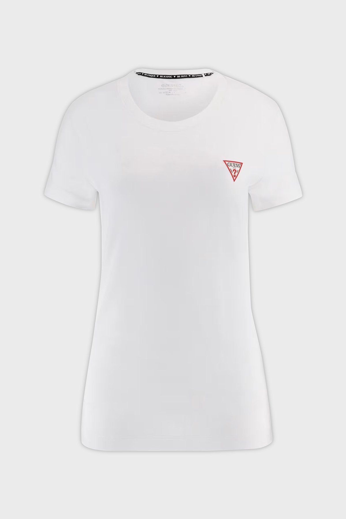 Ss Cn Mini Triangle Streç Pamuklu Slim Fit Bisiklet Yaka W2YI44J1314 Bayan T Shirt W2YI44 J1314 G011 BEYAZ