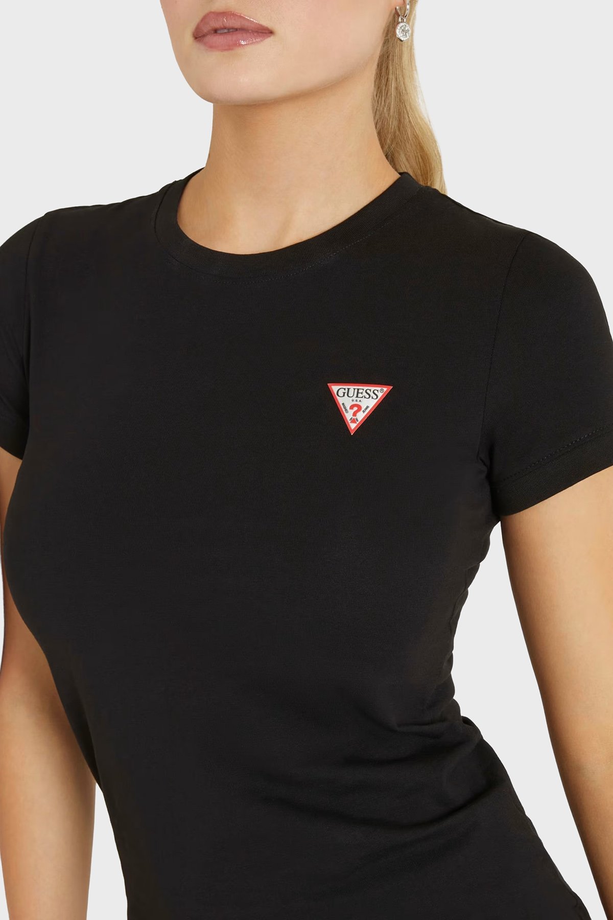 Ss Cn Mini Triangle Streç Pamuklu Slim Fit Bisiklet Yaka W2YI44J1314 Bayan T Shirt W2YI44 J1314 JBLK SİYAH