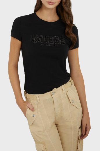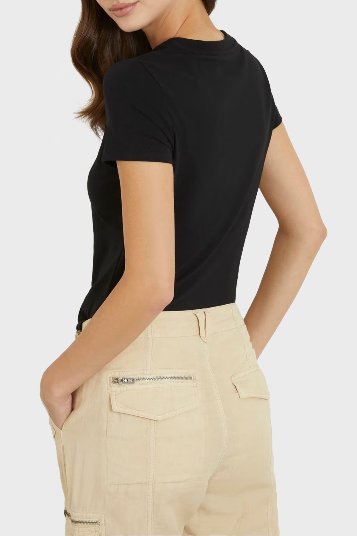 Ss Cn Sangallo Streç Pamuklu Slim Fit W4GI14J1314 Bayan T Shirt W4GI14 J1314 JBLK SİYAH