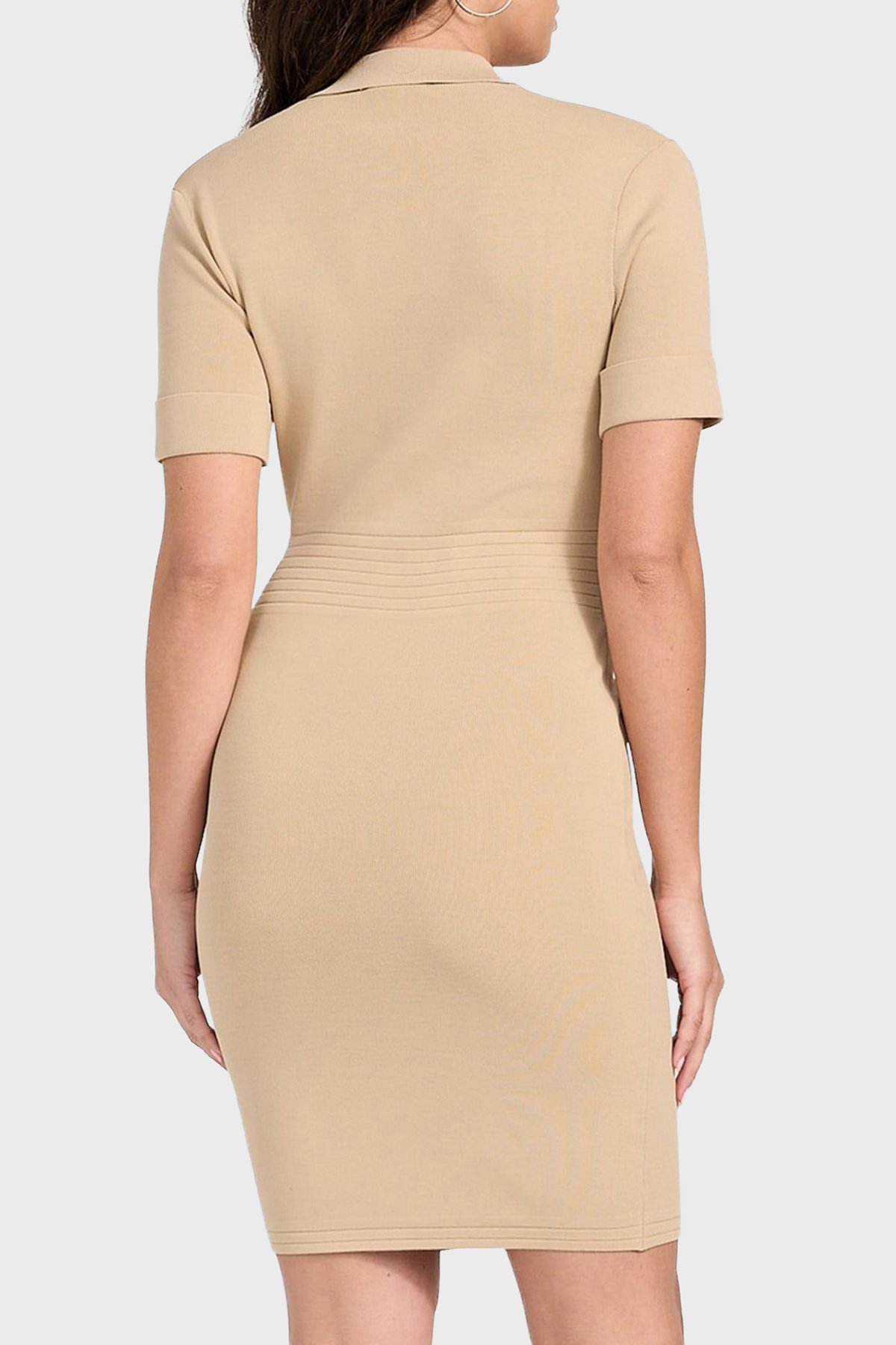 Ss Felicity Slim Fit Mono Yaka Düğme Detaylı Mini W5YK29Z0130 Bayan Elbise W5YK29 Z0130 G1L7 BEJ