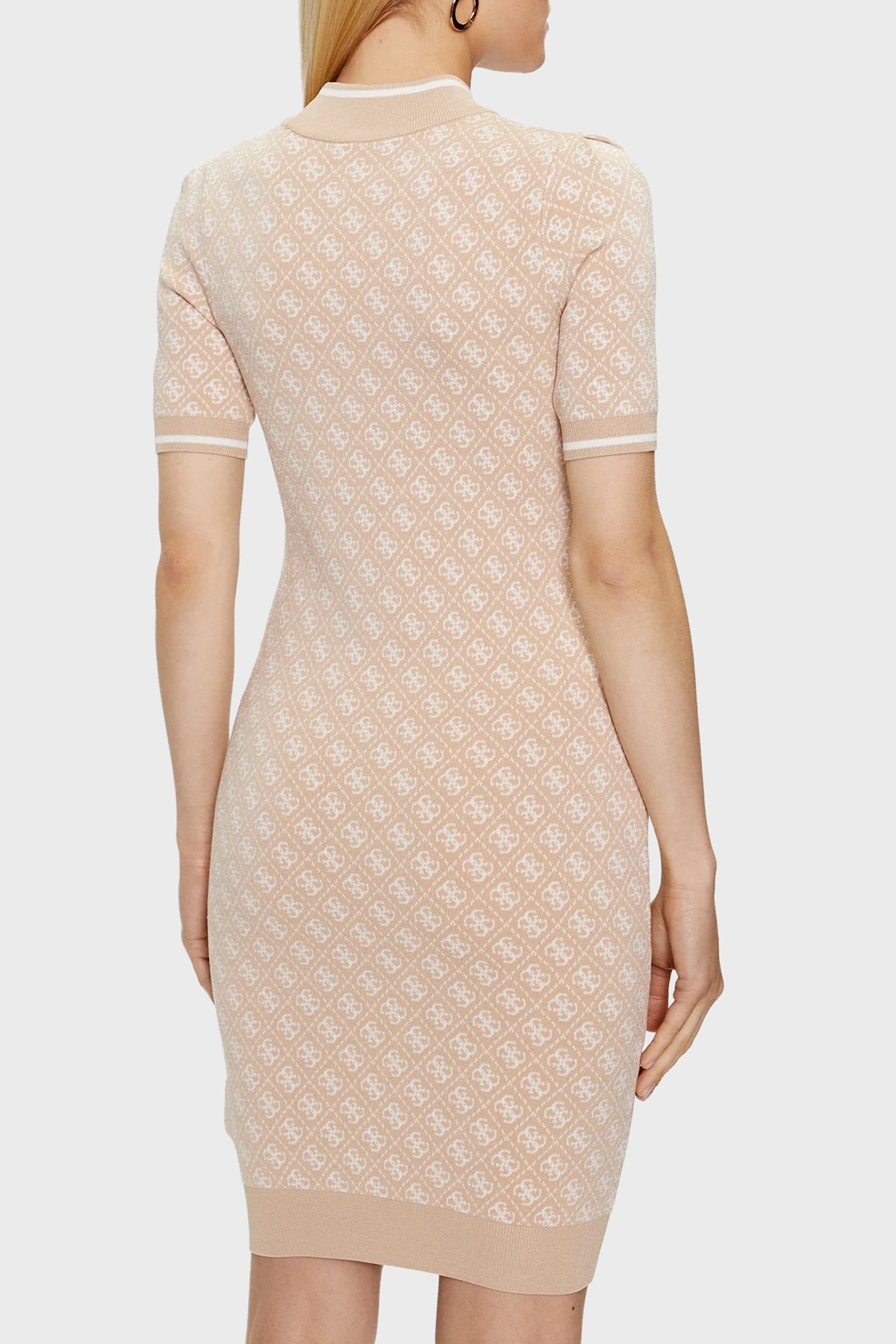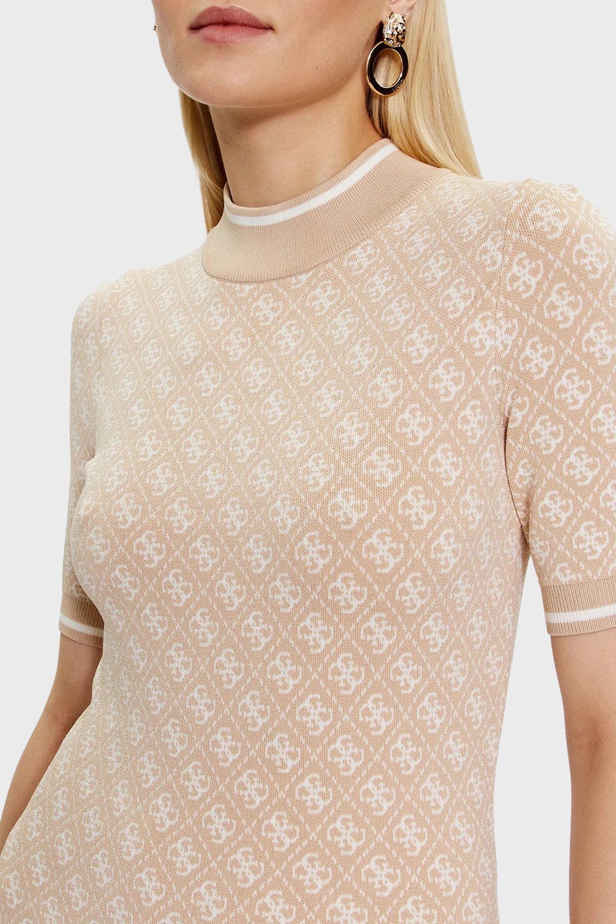 Ss Lise Slim Fit Bisiklet Yaka Logo Desenli Mini W3YK39Z37K0 Bayan Elbise W3YK39 Z37K0 F05O BEJ