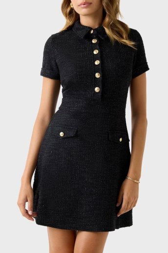 Ss Tamara Regular Fit Gömlek Yaka Düğme Detaylı Tüvit Mini W5YK18KCXO2 Bayan Elbise W5YK18 KCXO2 FJ5N SİYAH