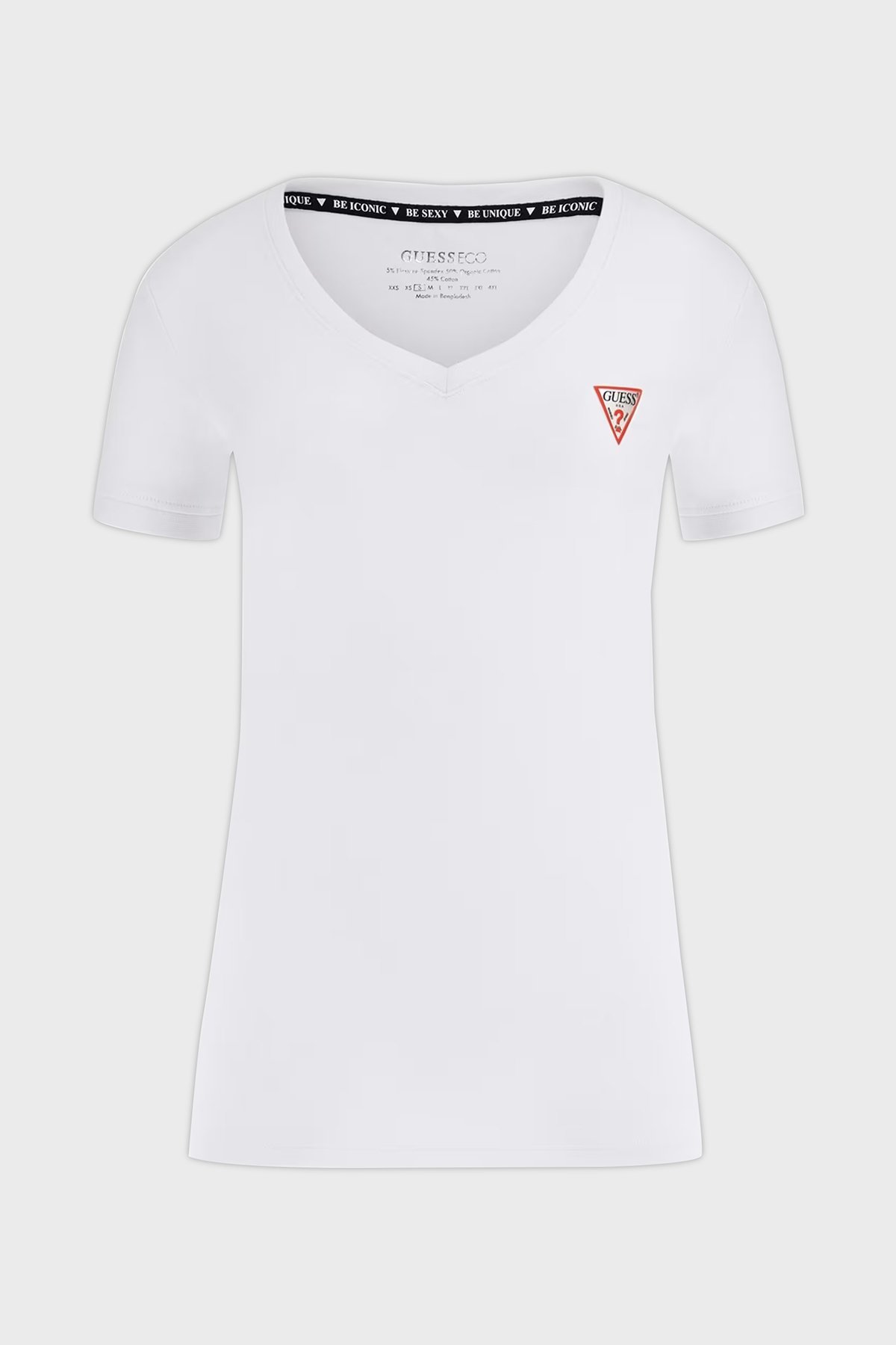 Ss Vn Streç Pamuklu Slim Fit V Yaka Logolu W2YI45J1314 Bayan T Shirt W2YI45 J1314 G011 BEYAZ