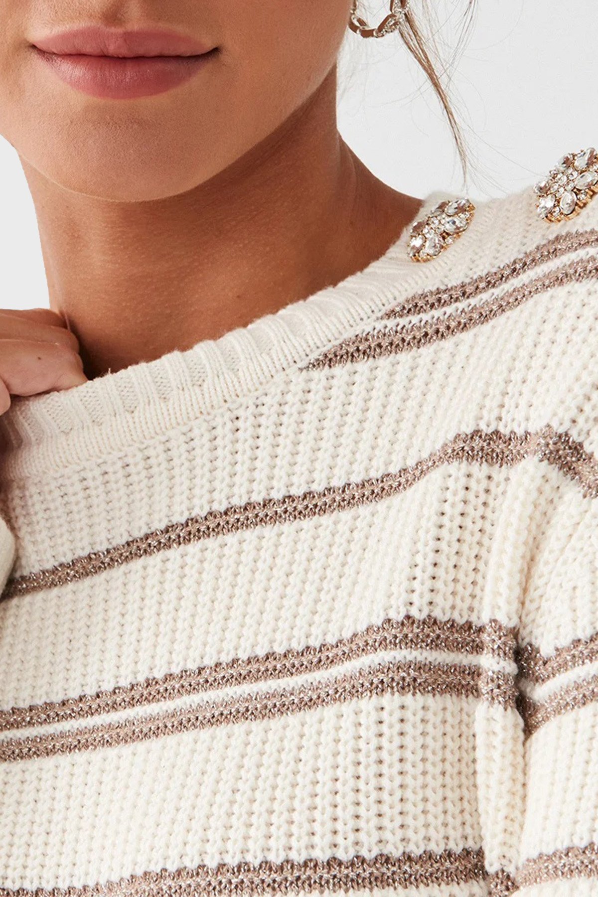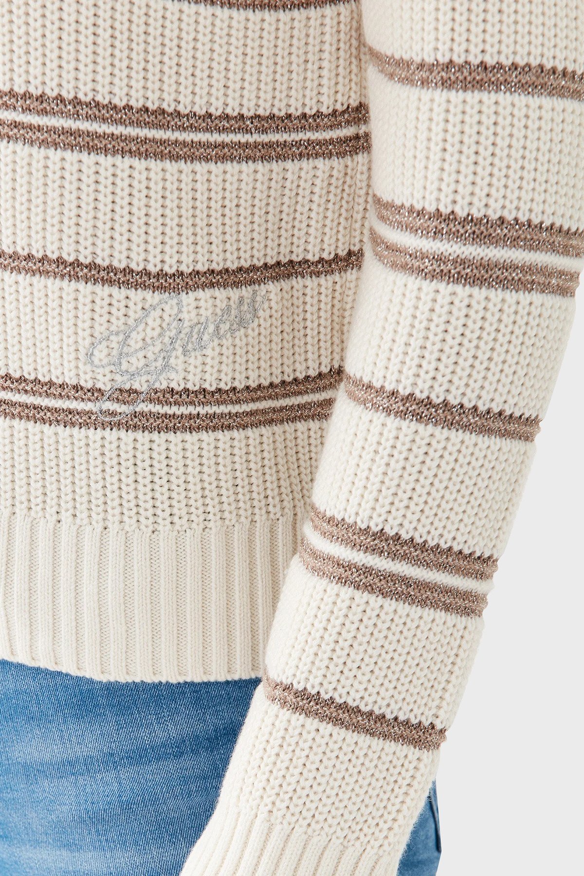 Striped Pamuklu Regular Fit Bayan Kazak W3YR27 Z37L1 S02V EKRU