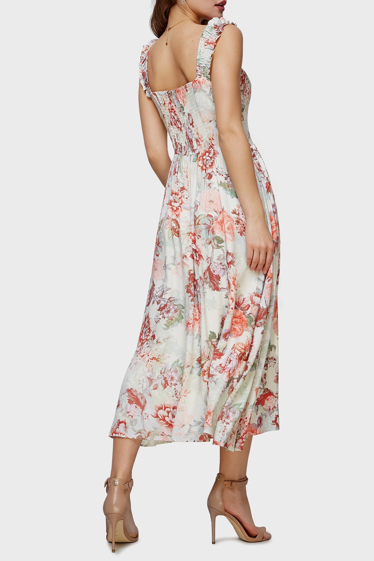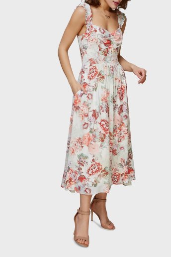 Susanna Çiçek Desenli Yaka Detaylı Cepli Midi Bayan Elbise W2GK57WEKC0 P82W PUDRA